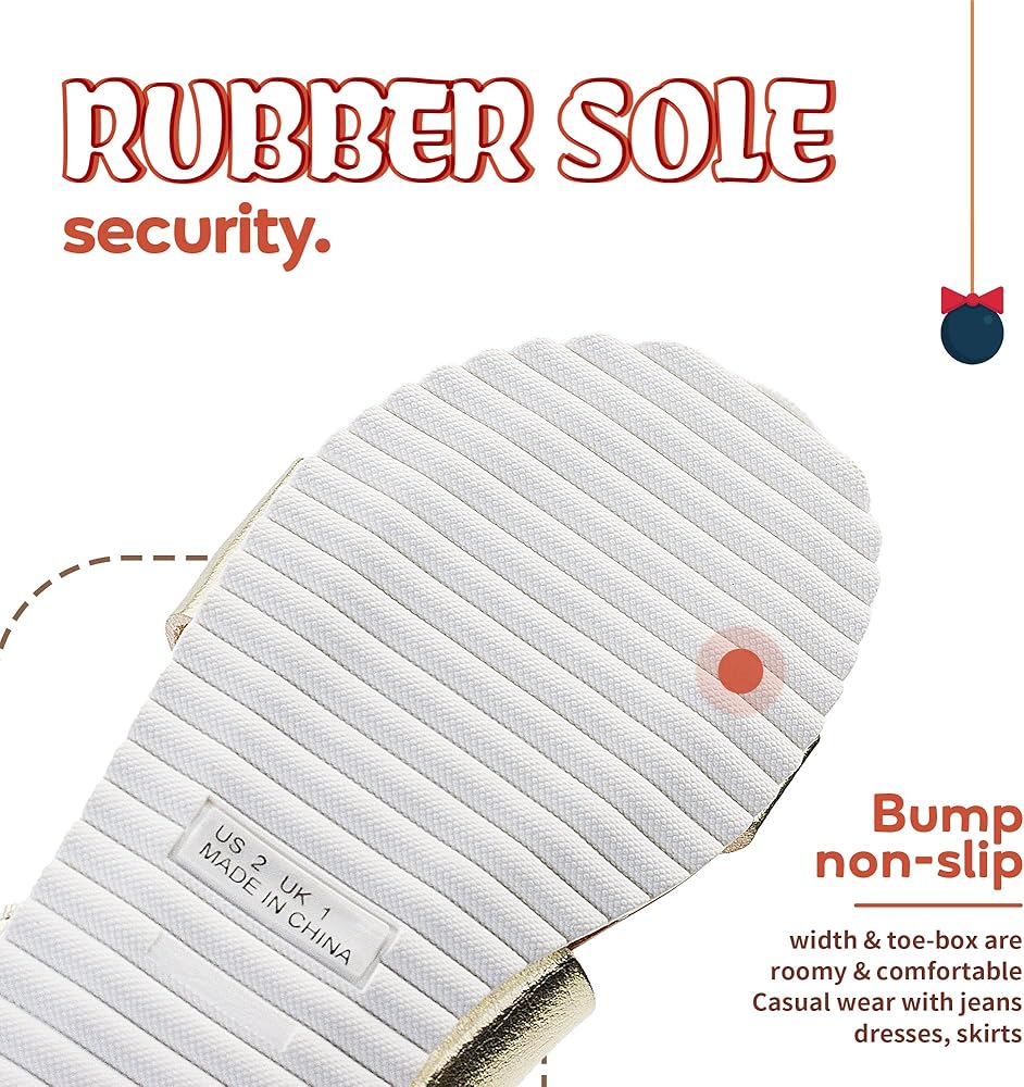 RUBBER SOLE: Girls flat sandals with flexible sole for added traction and stability to your little ones.