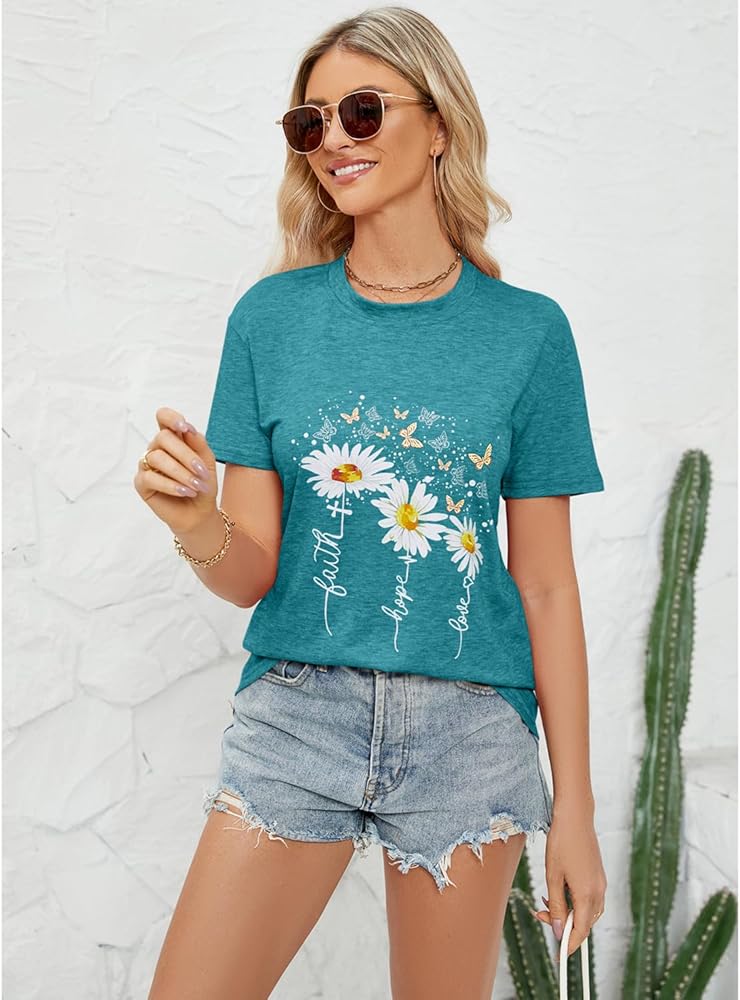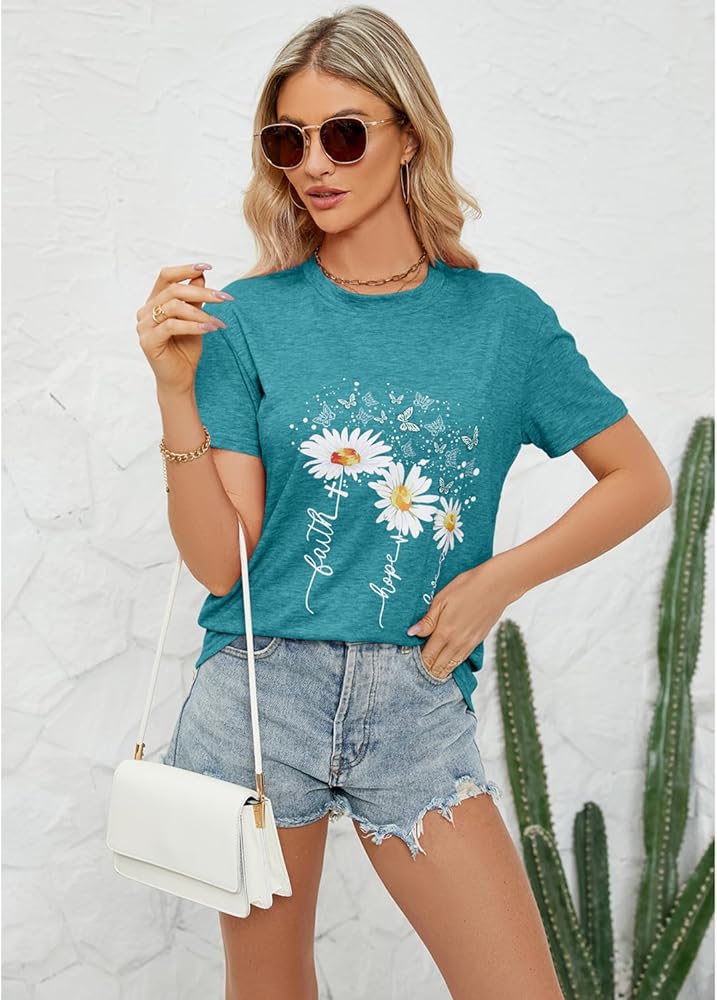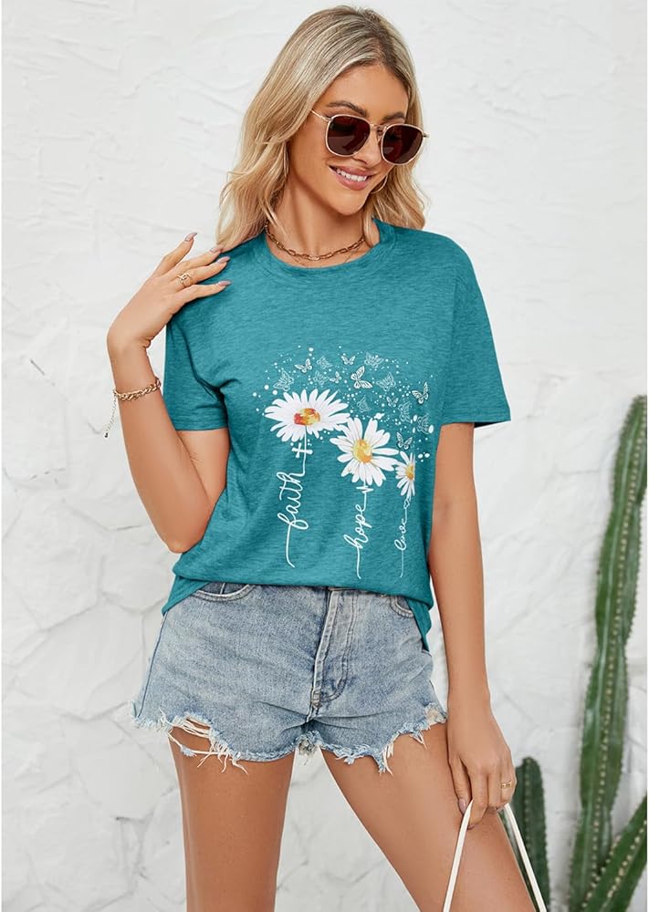 تيشيرت نسائي صيفي برقبة دائرية وأكمام قصيرة وطبعة كاجوال، لطيف على الموضة ومضحك