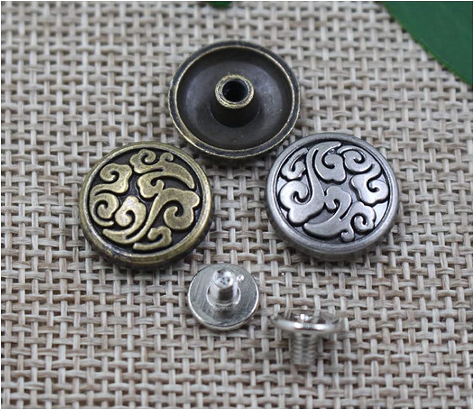 Duolai 30 قطعة من المحافظ السحابية الصينية الرجعية المصنوعة من الجلد أزرار Conchos المزخرفة بمسمار معدني برشام خلفي ملحقات منتجات جلدية ذاتية الصنع، برونزية
