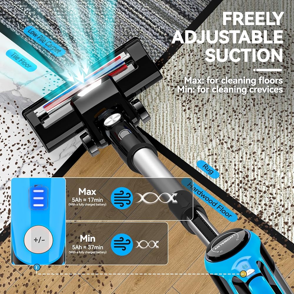 أطلق العنان لقوة شفط لا مثيل لها: قل وداعًا للأوساخ العنيدة والحطام الجامح وشعر الحيوانات الأليفة المزعج. مجهزة بمحرك هائل بدون فرش بقدرة 250 واط، توفر المكنسة الكهربائية لدينا قوة شفط مذهلة تبلغ 20000 باسكال. تعامل مع الفوضى بثقة واستمتع بتجربة التنظيف المطلق.