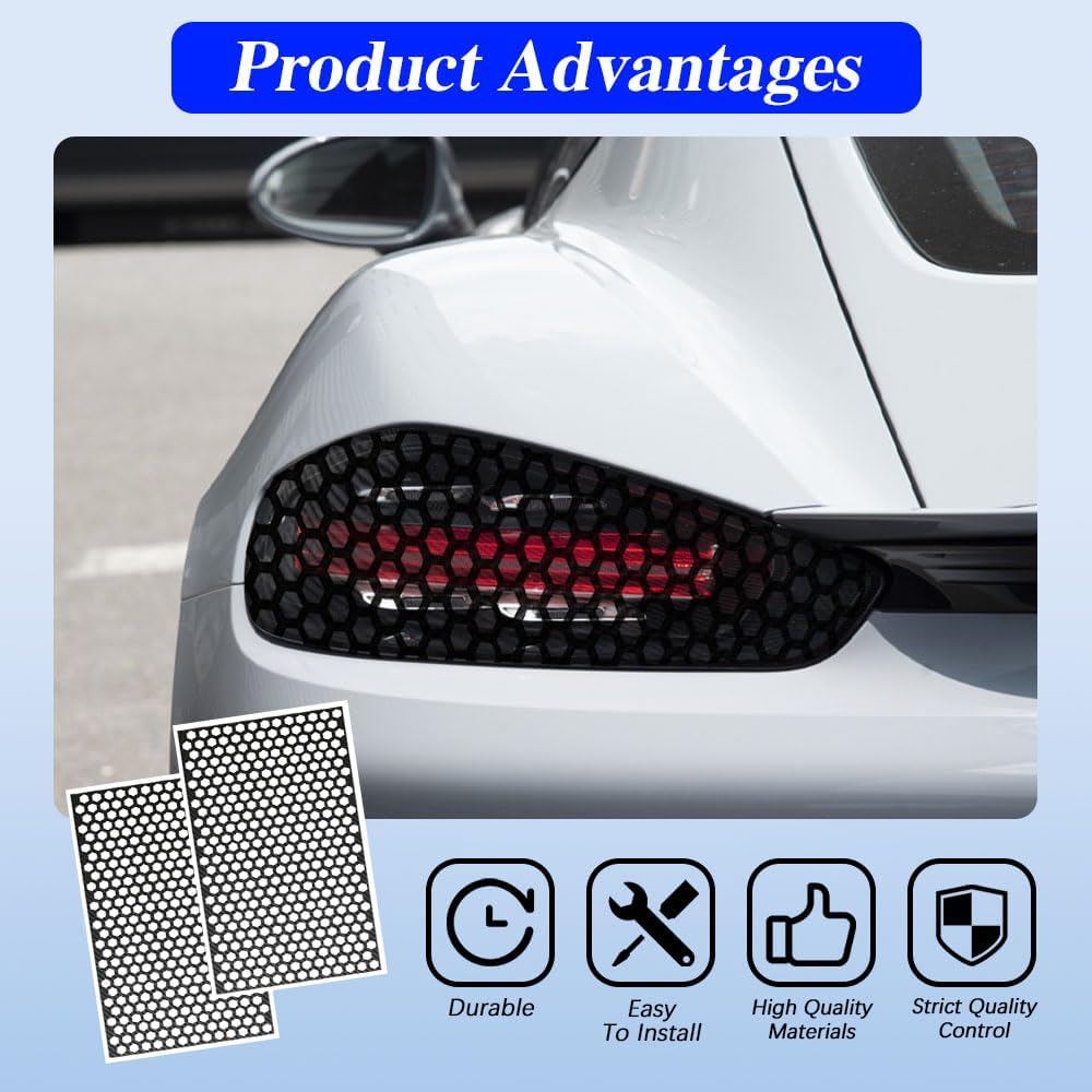 • [Material]: This honeycomb headlight sticker is made of high quality vinyl material, which is smooth, waterproof, crack resistant, wear resistant, and does not fade or fall off easily. With strong adhesion, it can perfectly cover your car's taillight without blistering easily.