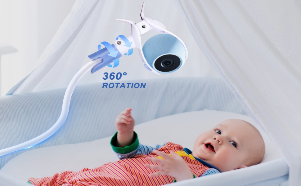 【ذراع أطول مرن وزاوية 360 درجة】الطول الإجمالي لحامل كاميرا الطفل هو 37.4 بوصة (95 سم)، وذراعنا الطويل يتمتع بانحناء وثبات أفضل. يدور 360 درجة بين الذراع ومشبك الكاميرا، حتى تتمكن من الانحناء والتدوير بسهولة. لتغيير وضعية مراقبة الطفل للحصول على أفضل نتيجة.