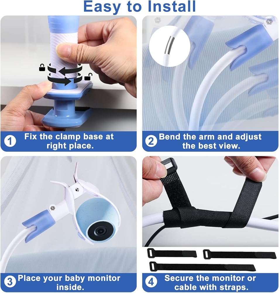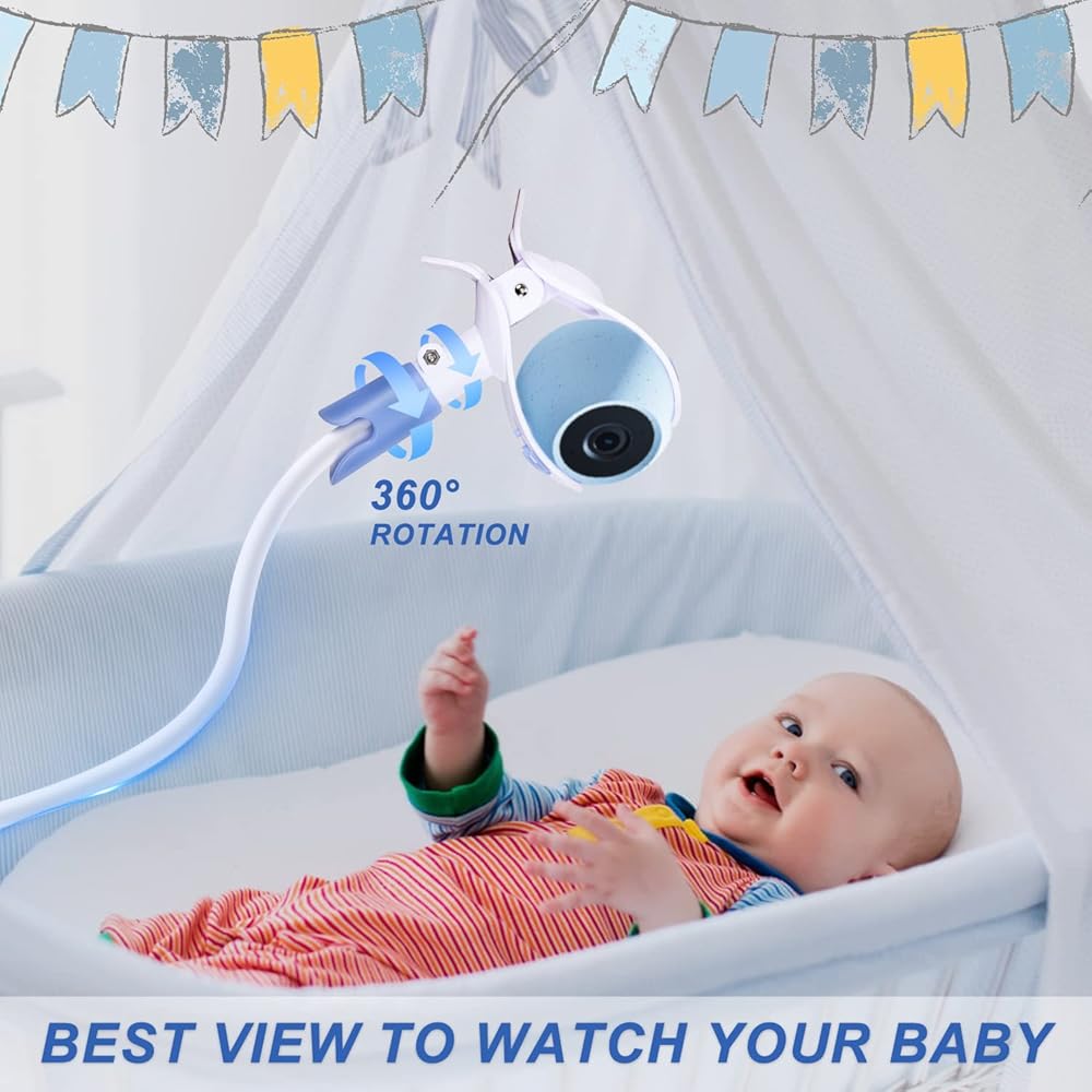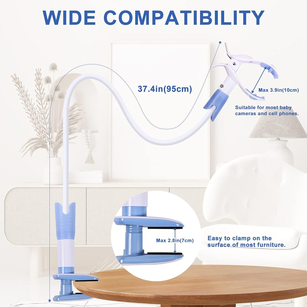 حامل عالمي لمراقبة الأطفال مع حزام أمان، حامل كاميرا أطفال مرن بذراع طويل 37.4 بوصة، حامل بمشبك قابل للتعديل لمعظم أجهزة مراقبة الأطفال والهواتف المحمولة، مثبت على سرير الأطفال/السرير/المكتب