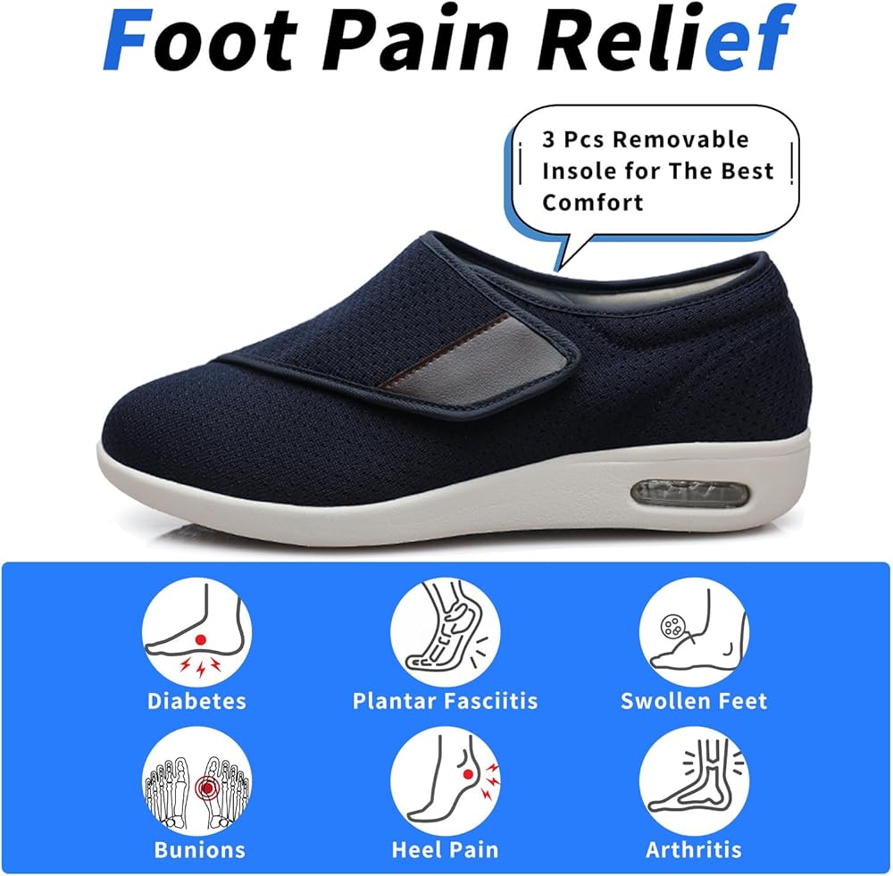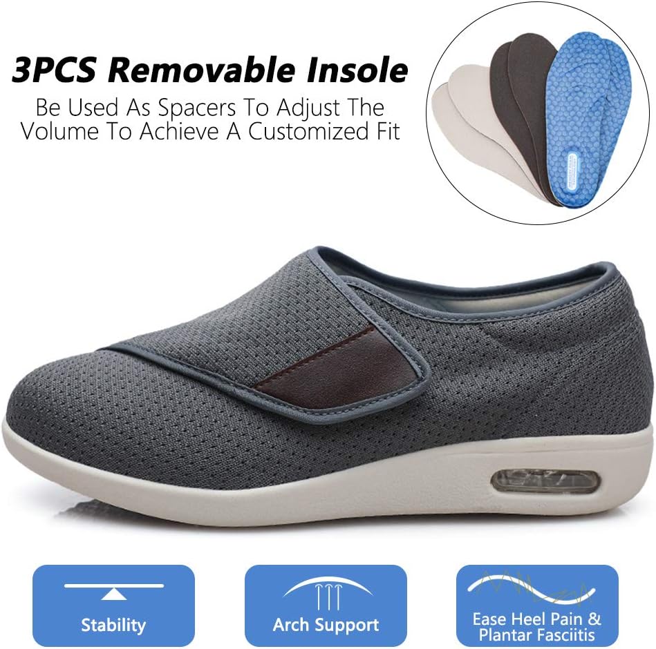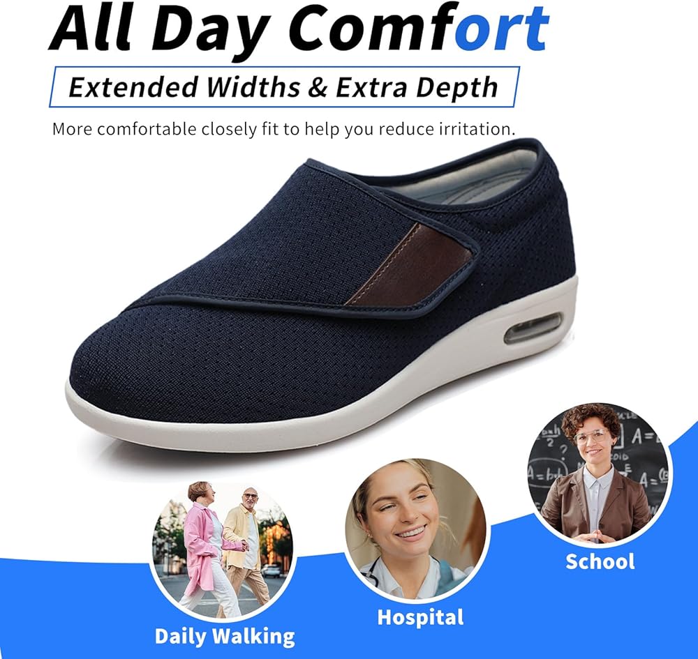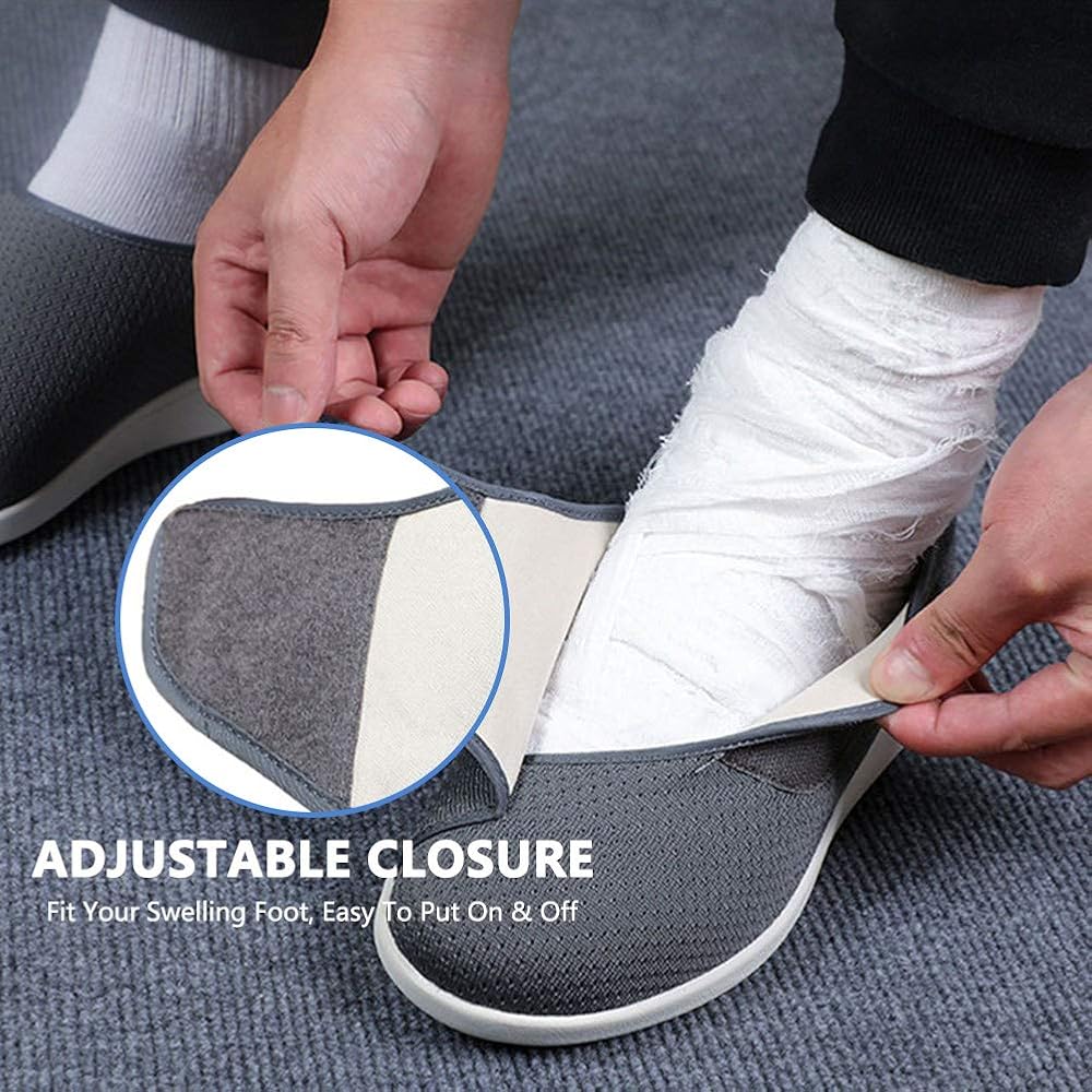 【سهل الارتداء والخلع】- إغلاق قابل للتعديل، يمكنك بسهولة ضبط الحزام وفقًا لتورم القدم، ويمكن تعديله بالكامل حسب عرض القدم. سهل الارتداء والخلع، مصمم لتوفير راحة شخصية لمرضى السكري أو تورم القدمين أو الوذمة أو التهاب اللفافة الأخمصية أو الأورام أو مرض السكري أو أصابع القدم المطرقية.