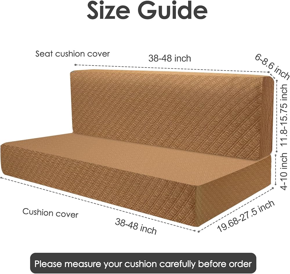【دليل المقاسات】 تتضمن العبوة غطاء وسادة مسند الظهر وغطاء مقعد، مما يوفر حلاً كاملاً لحماية وسادة RV الخاصة بك. يبلغ مقاس غطاء وسادة مسند الظهر ما يصل إلى 38-48 بوصة طولًا، و11.8-15.75 بوصة عرضًا، و6-8.6 بوصة سمكًا. يبلغ قياس غطاء المقعد ما يصل إلى 38-48 بوصة طولًا، و19.68-27.5 بوصة عرضًا، و4-10 بوصة سمكًا. مرونة ممتازة، مناسبة لأكثر من 90% من وسائد RV المتوفرة في السوق. لضمان الملاءمة المثالية، يرجى قياس وسادتك قبل الشراء.