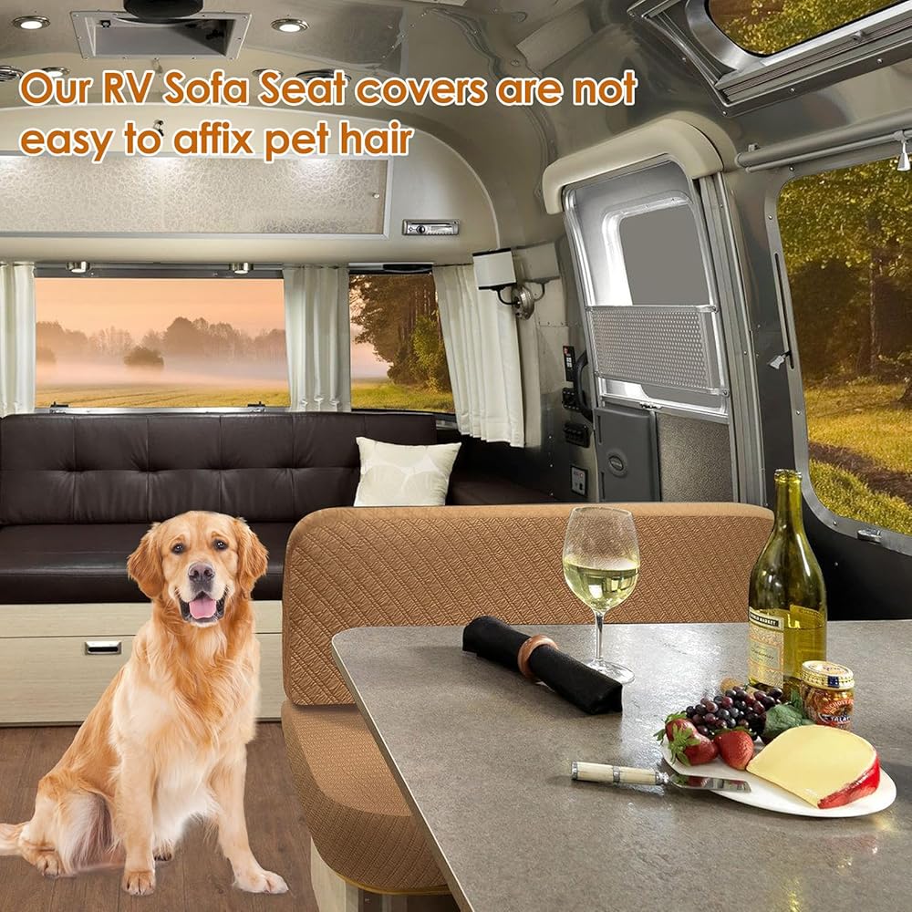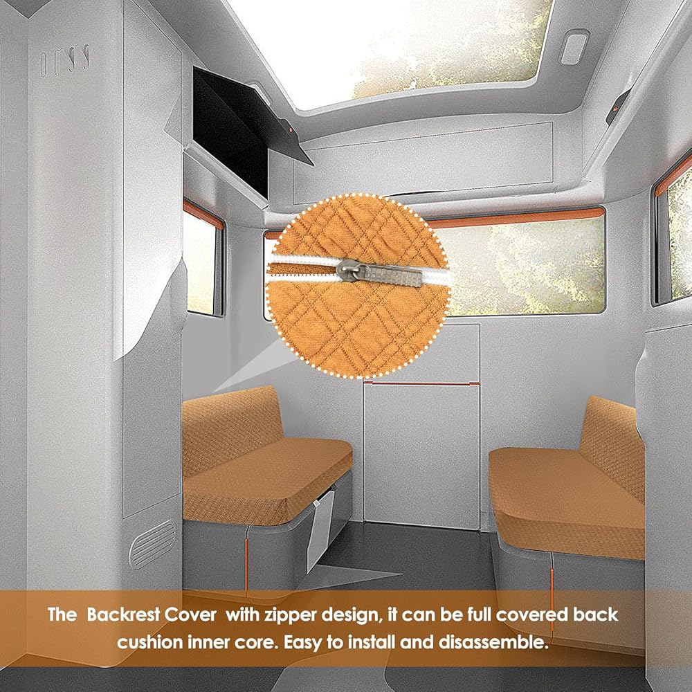 【ابق في مكانه】 تتميز أغطية مقاعد حجرة طعام RV بتصميم احترافي مع أشرطة مرنة لسهولة التركيب والإزالة، مما يوفر الحماية من التآكل والتمزق اليومي مع الحفاظ على الغطاء ثابتًا في مكانه ولن يتحرك بسهولة. غطاء مسند الظهر عبارة عن تصميم ملتف بالكامل على الجوانب الأربعة مع سحاب طويل لسهولة التركيب والإزالة. يتميز غطاء المقعد بتصميم أشرطة مطاطية ويأتي مع 4 أشرطة لتثبيته في مكانه.