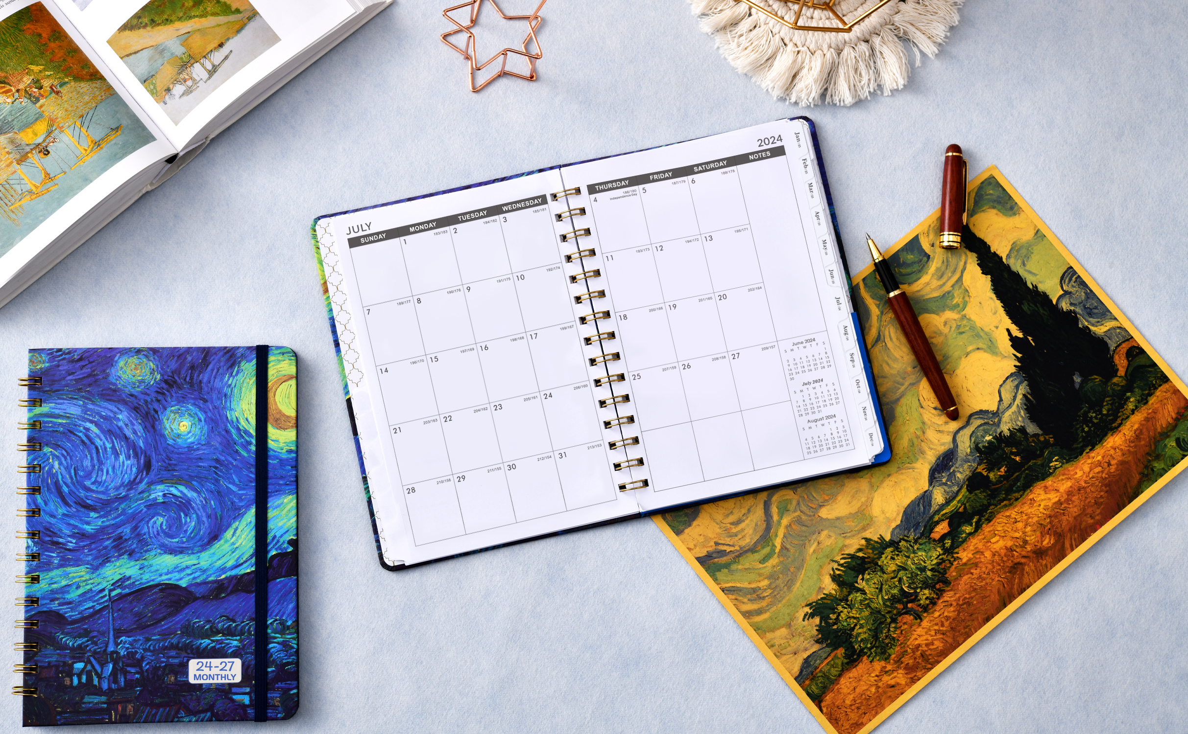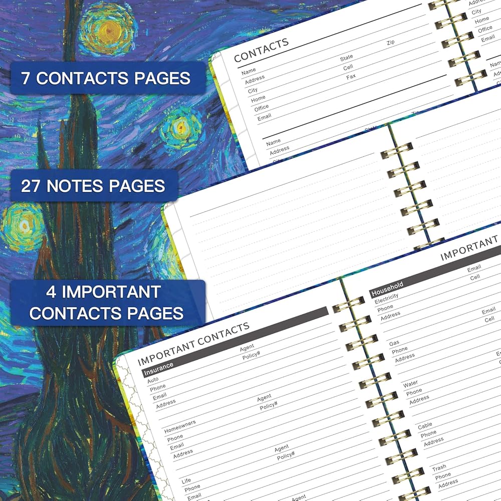 ✍ نظرة عامة شهرية - تغطي صفحة كل شهر معلومات مرجعية للأشهر الماضية والحالية والمستقبلية، وهي مناسبة للمستخدمين لوضع خطط طويلة المدى. بالإضافة إلى ذلك، يمكن لعمود الملاحظات تسجيل عناصر المهام والأفكار وما إلى ذلك. وأخيرًا يمكن أن تحفز الاقتباسات الملهمة المستخدمين على تنفيذ الخطط والترتيبات بشكل أفضل.
