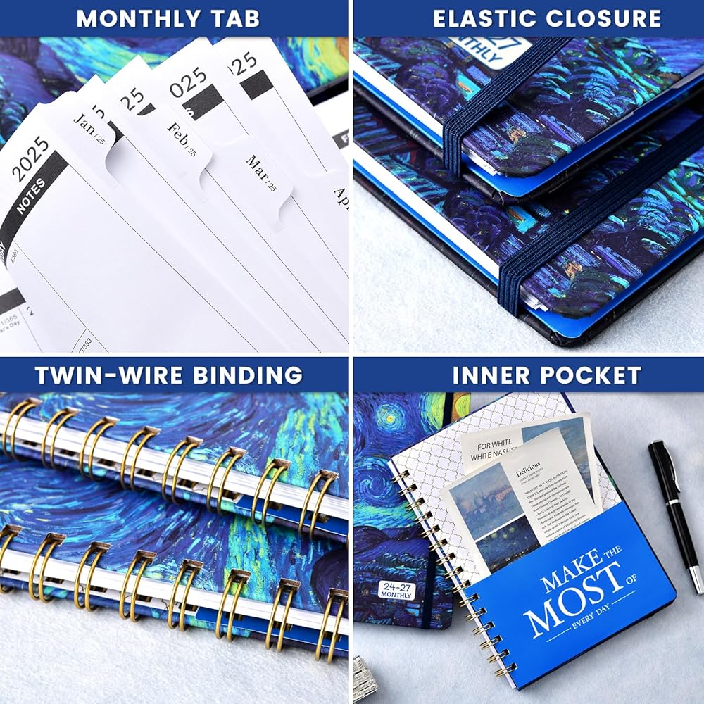 ✍ مخطط شهري 2024-2027 - يحتوي مخطط 2024-2027 لمدة 3 سنوات على صفحات شهرية لمدة 36 شهرًا من يوليو 2024 حتى يونيو 2027، مما يسهل على المستخدمين التخطيط لأنشطتهم ورحلاتهم أو جدولتها أو تتبعها. يبلغ مقاس المخطط 16.4 سم × 8.5 سم وهو كبير بما يكفي لتتبع كل موعد نهائي، ومناسبة خاصة، واجتماعات، وموعد والمزيد.