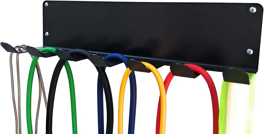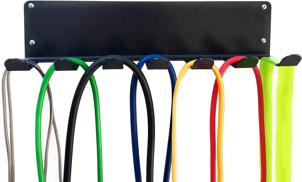 • EASY STORAGE. No need to untangle or dig through your exercise equipment. This resistance band rack provides seven convenient hangers to keep your gear easily accessible