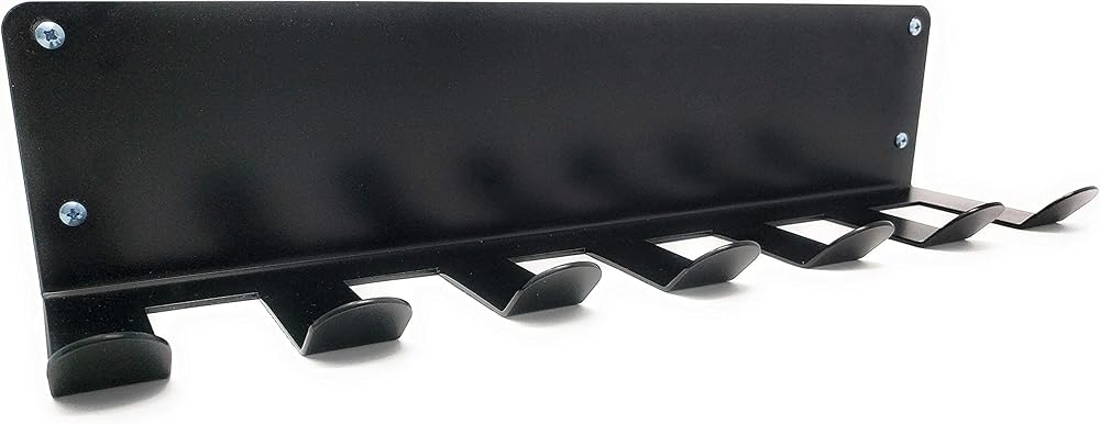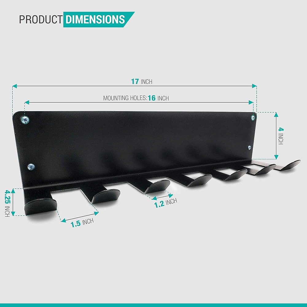 • PRODUCT DIMENSIONS: Gym accessory storage rack measures 17” x 4”. Hanger prongs extend 4.25” and measure 1.2” in width with 1.5” gaps between prongs.