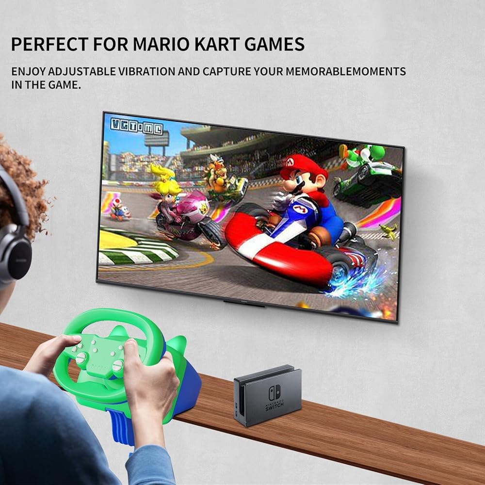 • Pro Switch Racing Wheel: Specially designed for Mario Kart games, with wired and wireless connections, adjustable motor vibration, screenshot functionality, and cat ear LED lights for an immersive experience.