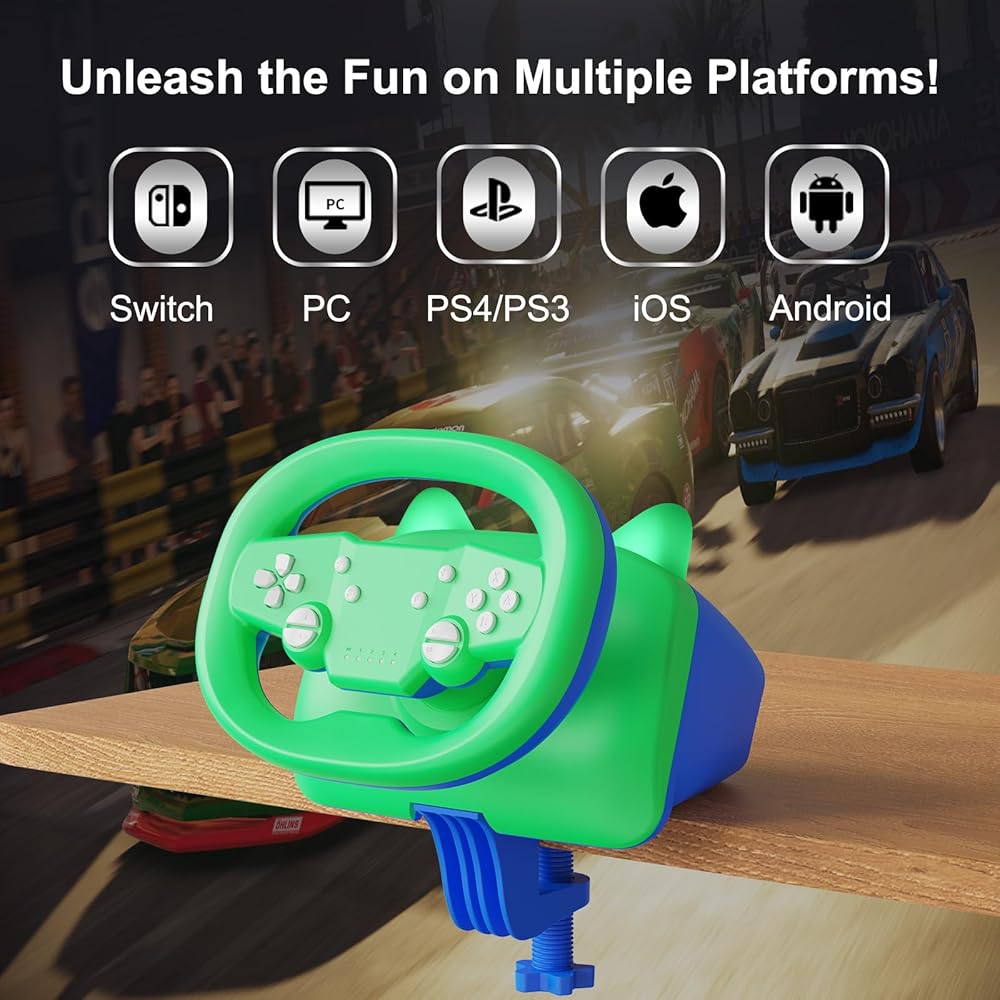 With built-in dual-vibration motors, adjustable intensity levels, and advanced sensitivity settings, the wheel delivers precise control and feedback for an immersive gaming experience. Whether you're playing on PC, PS4, PS3, Switch, Android, or iOS devices, enjoy seamless connectivity with Bluetooth 5.0 technology.
