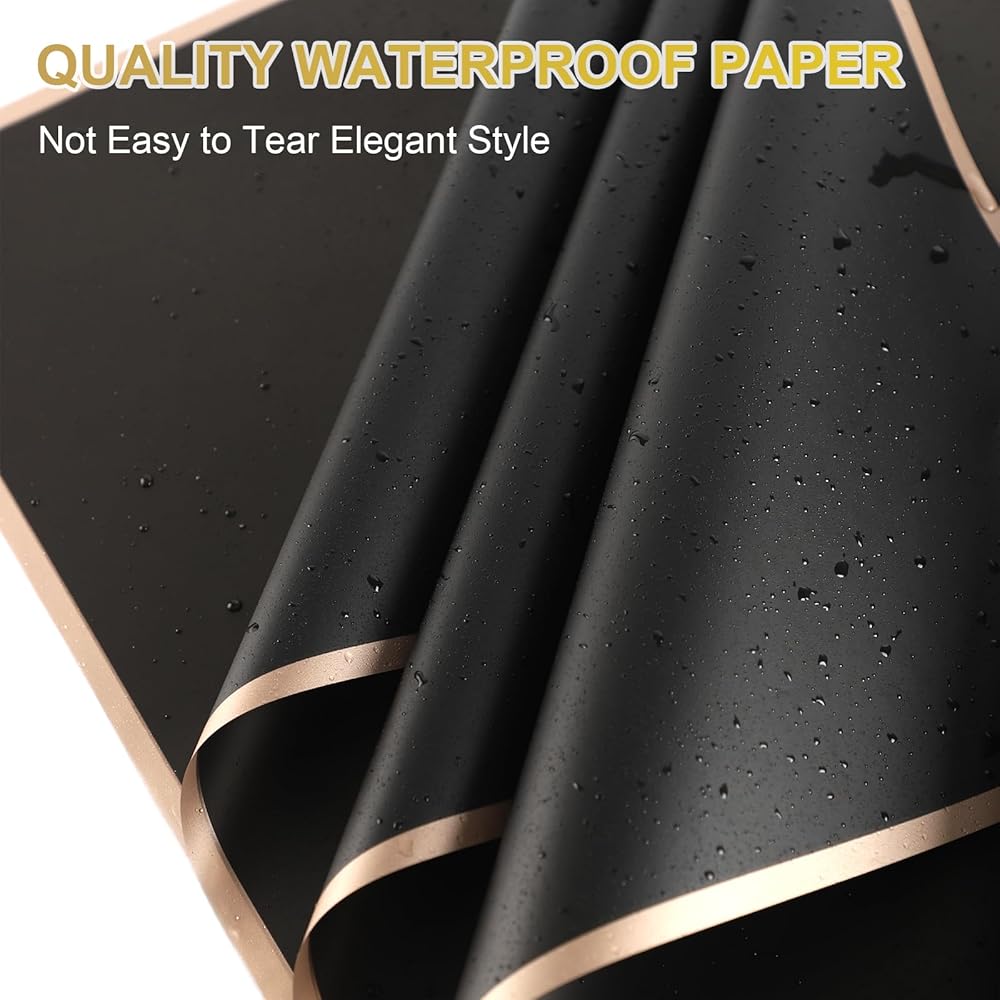 • Waterproof Paper:This selection of flower wrapping papers is crafted from waterproof materials and features a golden border and a translucent design, exuding an air of sophistication and elegance. Available in four different colors—black, white, light green, and rose pink—these papers offer the perfect complement to your bouquets(papel coreano para flores con diseños).