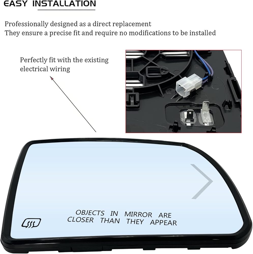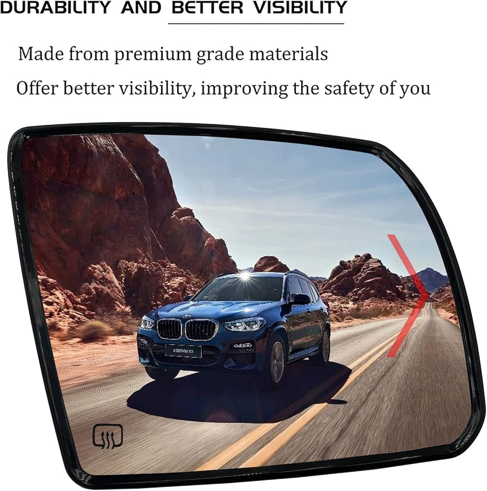 زجاج مرآة عالي الجودة على الجانب الأيسر - تحل هذه المرآة الجانبية محل زجاج المرآة المسخن من جانب السائق المكسور أو المفقود لضمان سلامتك خلف عجلة القيادة. مرآة الرؤية الجانبية الخاصة بنا مصممة كبديل مباشر، وتوفر رؤية أفضل، وتحسن سلامتك.