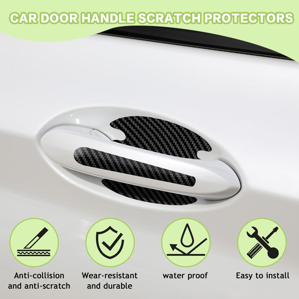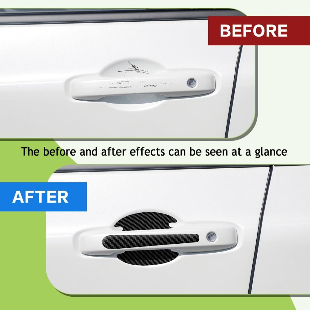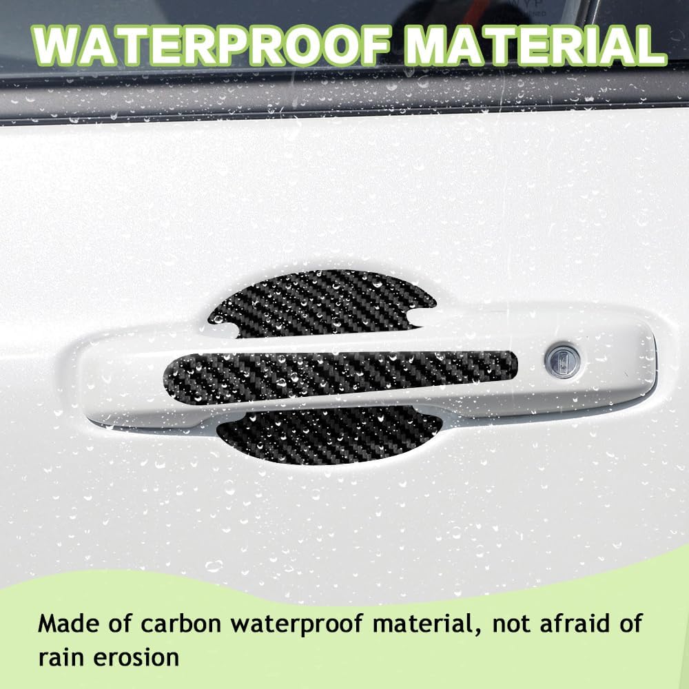 [High quality material] : The car door handle protector is made of self-adhesive material, with waterproof, firm and reliable, not easy to crack and damage, high and low temperature resistance, not easy to fade, strong adhesion, not easy to fall, durable characteristics, long service life.