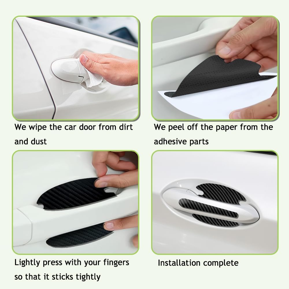 [Easy to use] : This door handle anti-scratches sticker is self-adhesive design, easy to install and use, you need to clean the installation position, ensure that there is no dust and other impurities, and then tear off the protective film on the back of the sticker, align it with the corresponding position of the door, paste it on, you can gently press to ensure that the firm, good viscosity, not easy to fall after installation.