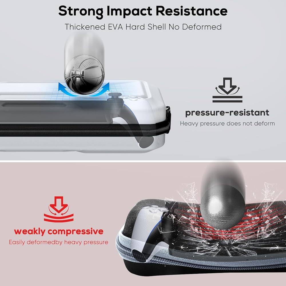 • حماية متينة: مصنوع من مادة EVA متينة، هذا الجراب مقاوم للماء والخدش، مما يوفر حماية موثوقة لمشغل PlayStation Portal Remote الخاص بك.