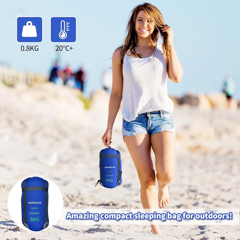 WARM & COSY: This Sleeping Bag for Adults & Kids by SAFACUS combines a warm 80G/M2 hollow fiber filling, helping to keep you warm and comfortable when camping, hiking or travelling in spring, summer and autumn