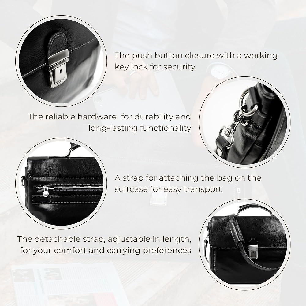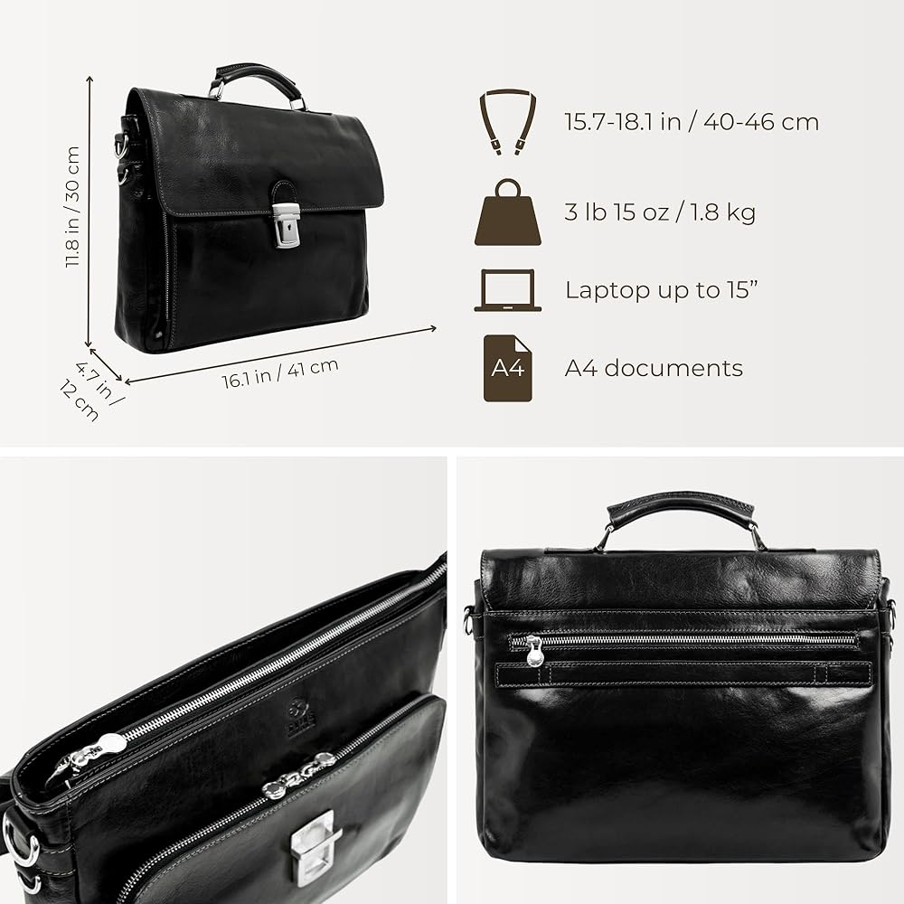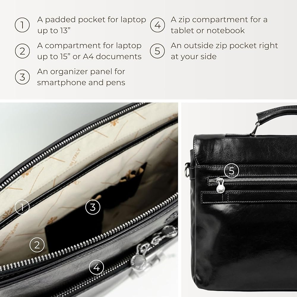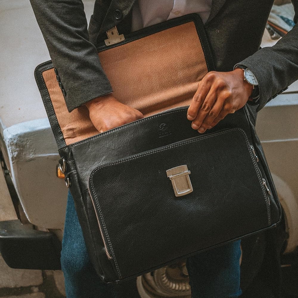 • ✔️ “YOU CAN HAVE ANYTHING YOU WANT IN LIFE IF YOU DRESS FOR IT.” – Edith Head. A stunning leather laptop bag will make you feel confident, assertive, and good-looking. Formal yet poetic full-grain leather briefcase bag for one who is maneuvering between creative and business style. The leather messenger briefcase will be a great self-confidence boost for completing your goals and advance in your work career and casual life