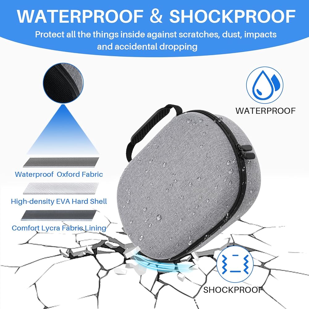 حافظة ZOOS لهاتف Apple Vision Pro حافظة صلبة لملحقات Vision Pro سماعة الواقع الافتراضي، حقيبة تخزين مقاومة للماء للسفر متوافقة مع Apple Vision Pro للتخزين المنزلي للسفر، رمادي