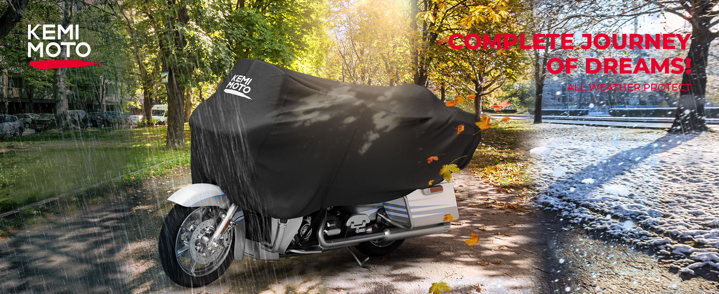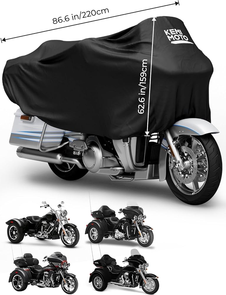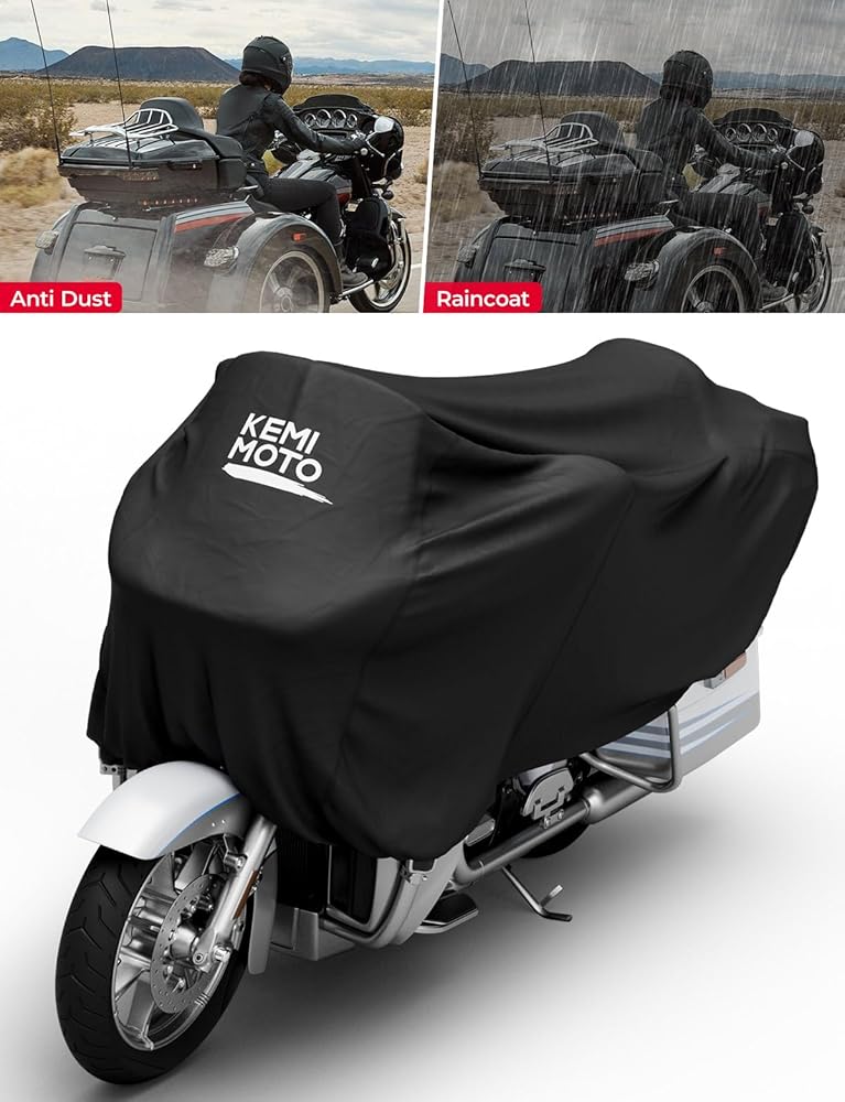 غطاء دراجة نارية من KEMIMOTO، نصف غطاء للدراجة الترابية، لنماذج التجول Road King Street Glide Road Glide مقاوم للماء ومقاوم للماء في الهواء الطلق وحماية من جميع الأحوال الجوية من الغبار وأشعة الشمس والمطر، أسود
