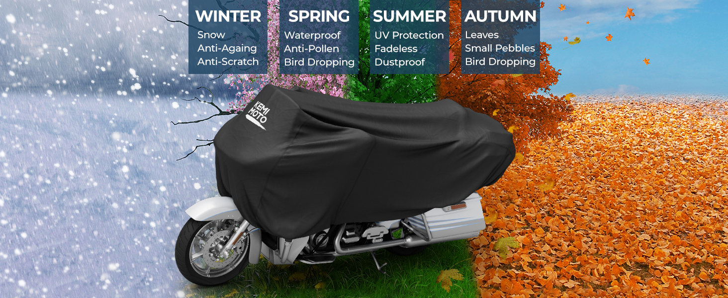 مقاومة للخدش: المادة من نسيج أكسفورد الفاخر. بالمقارنة مع مادة النايلون التقليدية، فإن نسيج أكسفورد أكثر نعومة ويوفر شعورًا أفضل. عندما تقوم بتغطيتها أو خلعها عن دراجتك النارية، ستكون فرصة خدش طلاء دراجتك النارية أو المرايا أقل
