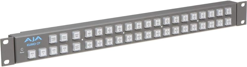 The KUMO CP Control Panel is a destination-oriented panel allowing selection of 16 sources to 16 destinations on each of up to four KUMO routers. The control panel will connect to a single KUMO router (straight Cat 5 connection) automatically without computer/browser interface. For connection to up to four routers at a time, use the KUMO browser interface to assign the router select buttons to any four KUMO routers on your network.