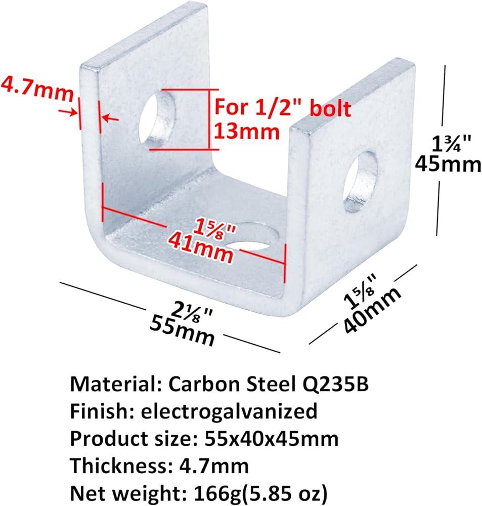 - Inner width:41mm(1-5/8”), width 55mm(2-1/8”), length 40mm(1⅝”), height 45mm(1¾”), thickness 4.7mm.