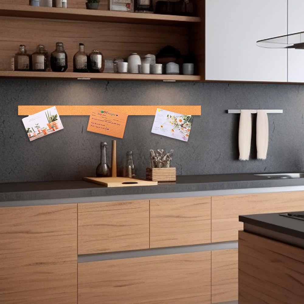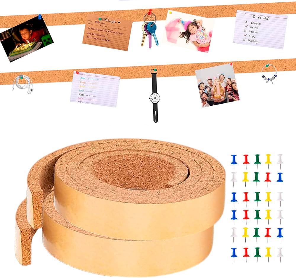 【RICH IN USE】 It is perfect for apartments, home, office, school, classroom, living room, bedroom, and kitchen, mounted on workbenches, computers, cabinets, partitions, desks, or whiteboards. You can use it to pin pictures, memos, reminders, shopping lists, recipes, jewelry, and more, keeping everything organized and in one place. These adhesive cork strips will give your office or home a classic look that's both sturdy and stylish. They're a great addition to your space!