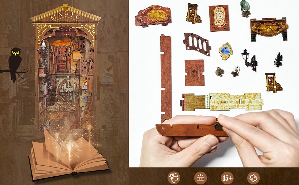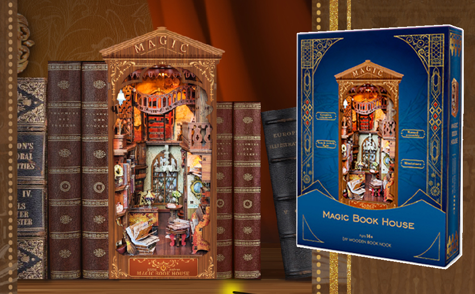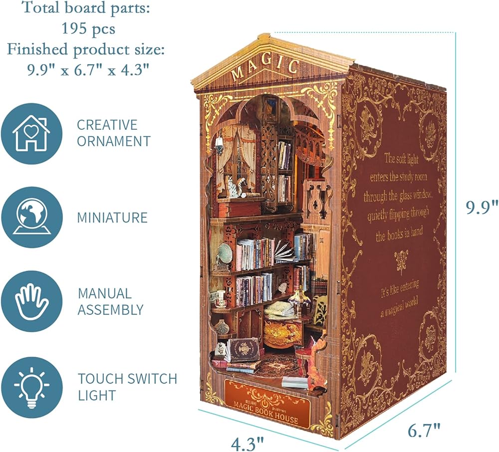 مجموعة أدوات كتاب DIY، كتاب DIY Dollhouse Booknook، كتاب سحري، نهايات كتب ألغاز خشبية ثلاثية الأبعاد، مجموعات مصغرة لزوايا الكتب مع ضوء LED للبالغين (SQ06)