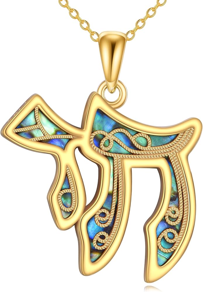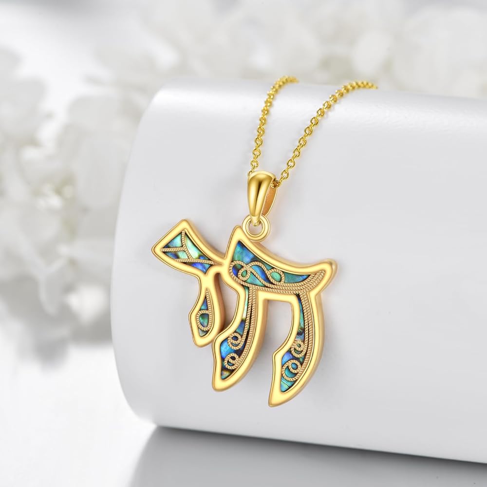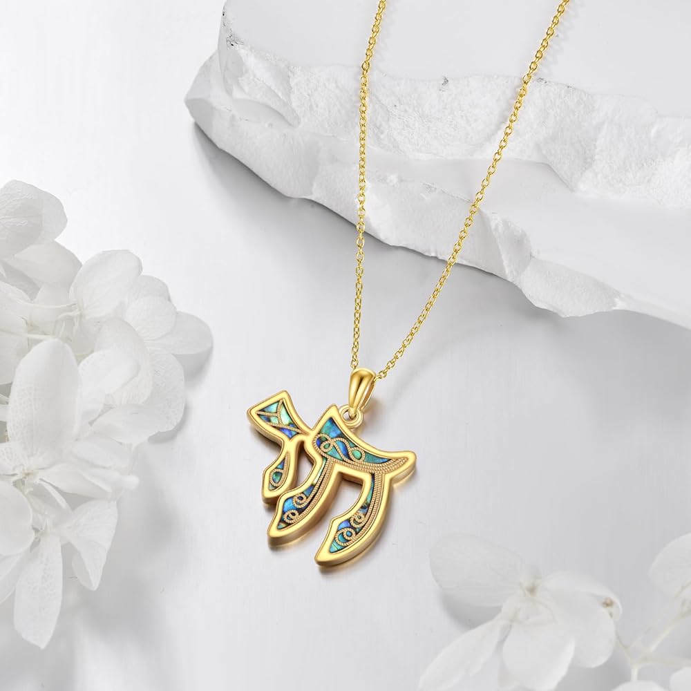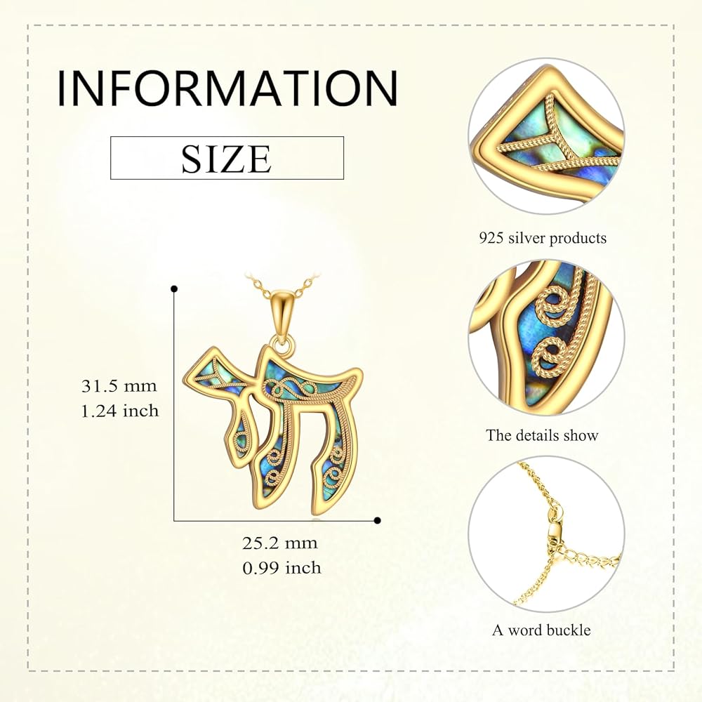 ❤Material Quality❤Chai pendant inlaid with created abalone shell 14k yellow gold vermeil for a unique look. The chai Pendant has a high polish finishmade of the hypoallergenic Sterling silver, nickel-free, lead-free, cadmium-free, especially for those with sensitive skin.