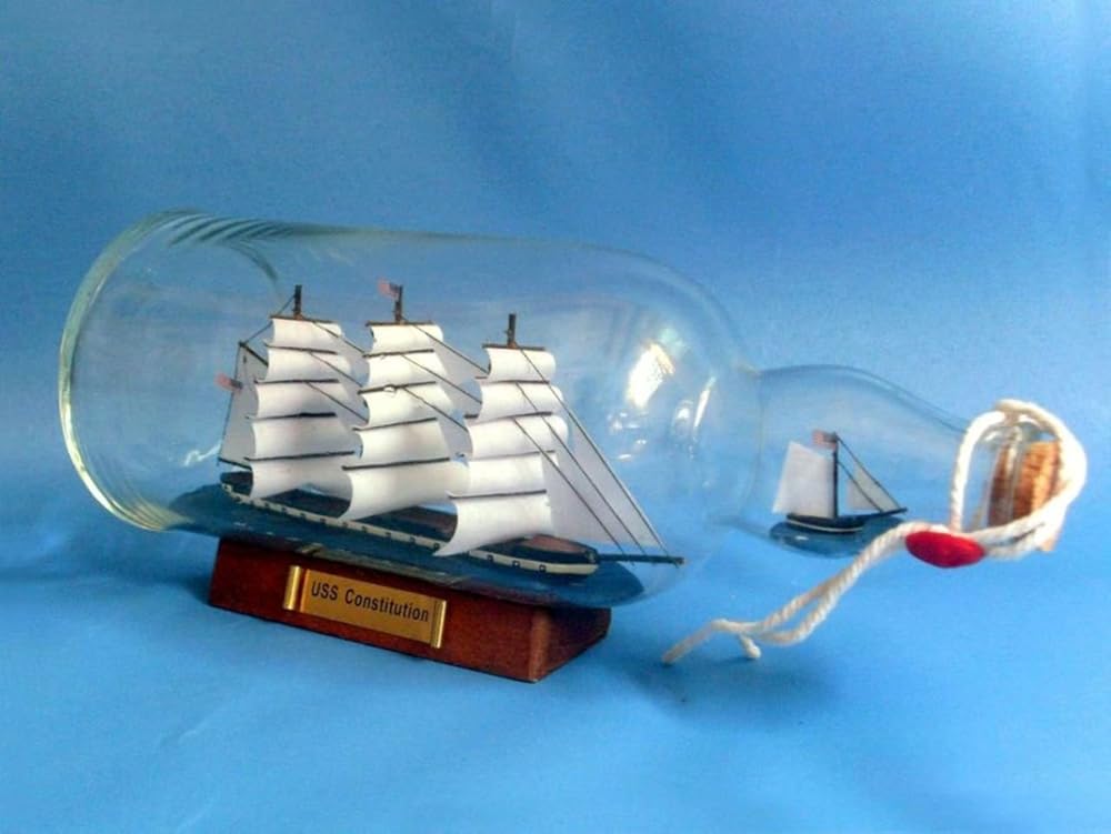 FULLY ASSEMBLED - READY FOR IMMEDIATE DISPLAY - This is not a Ship-in-a-Bottle kit - The ship in a bottle is one of the classic items of nautical decor, as much fun and mystery as it is remarkable craftsmanship. Now you can enjoy an adorable ship in a bottle for yourself or give one as a gift to friends, family, clients or co-workers.