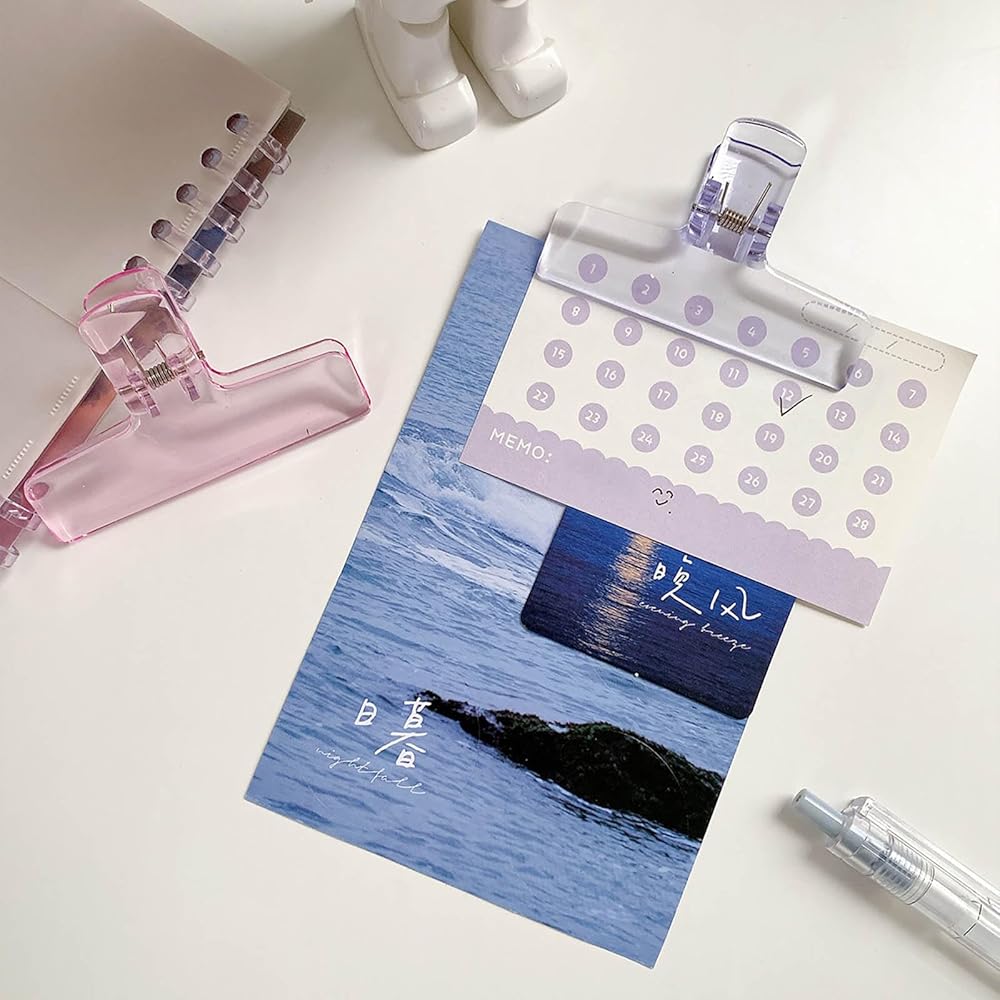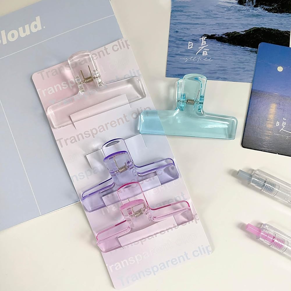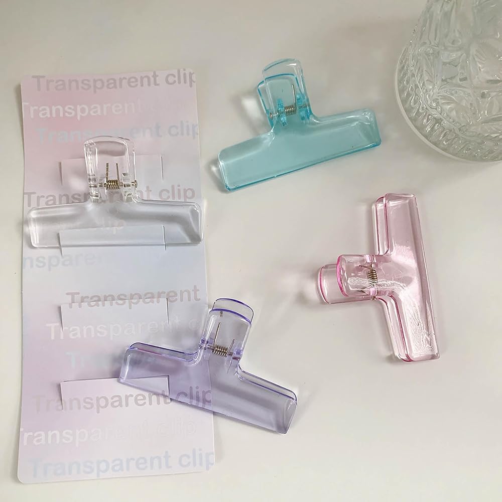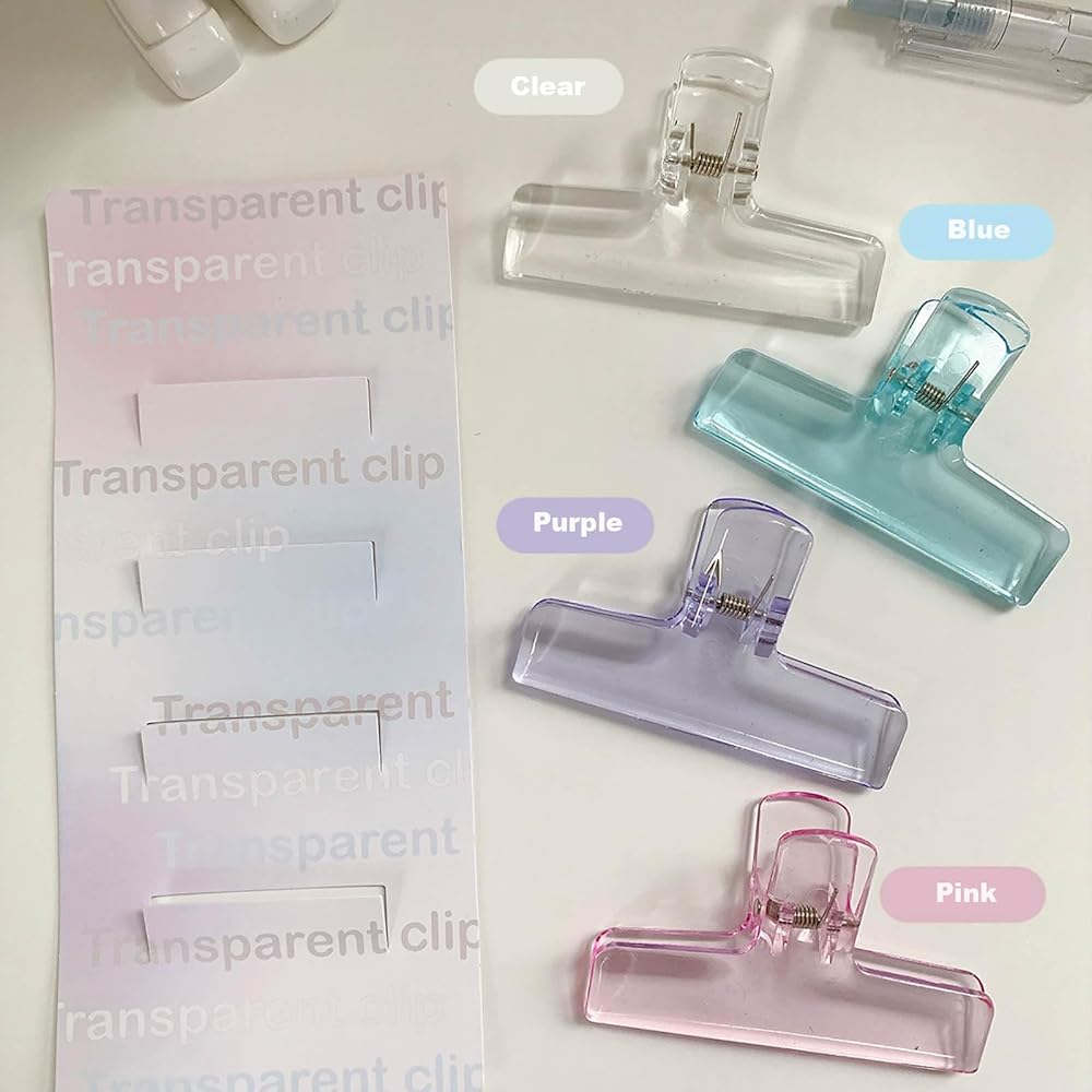 Value Pack - Package contains 4PCS vibrant colors transparent design paper album bag clip. Vivid and creative. Plastic Food Bag Clips with wide mouth design for easy gripping and handling.