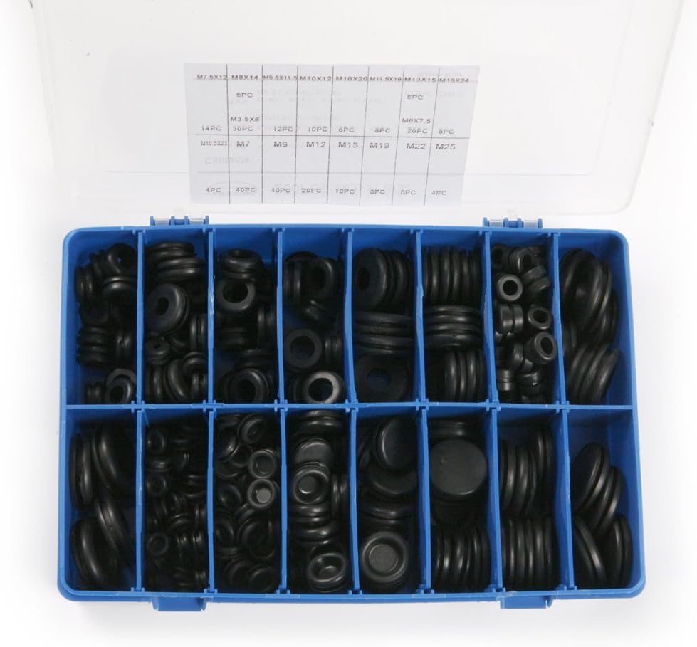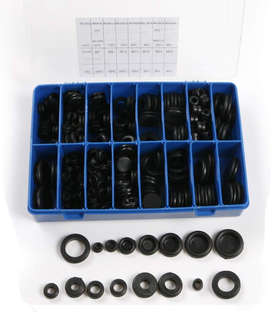 - 250 Quality rubber grommets in 18 popular sizes