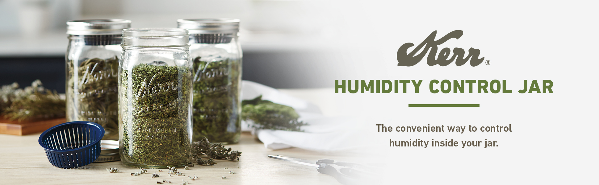 For years Kerr mason jars have been one of the most convenient ways to store dried fruits herbs coffee tea and other pantry staples thanks to a quality design and an air-tight seal With the Kerr Humidity Control Jar we've made Kerr jars even more ideal for storage by introducing a humidity control solution that maintains a 62% relative humidity level inside the jar and is designed for easy replacement