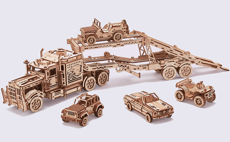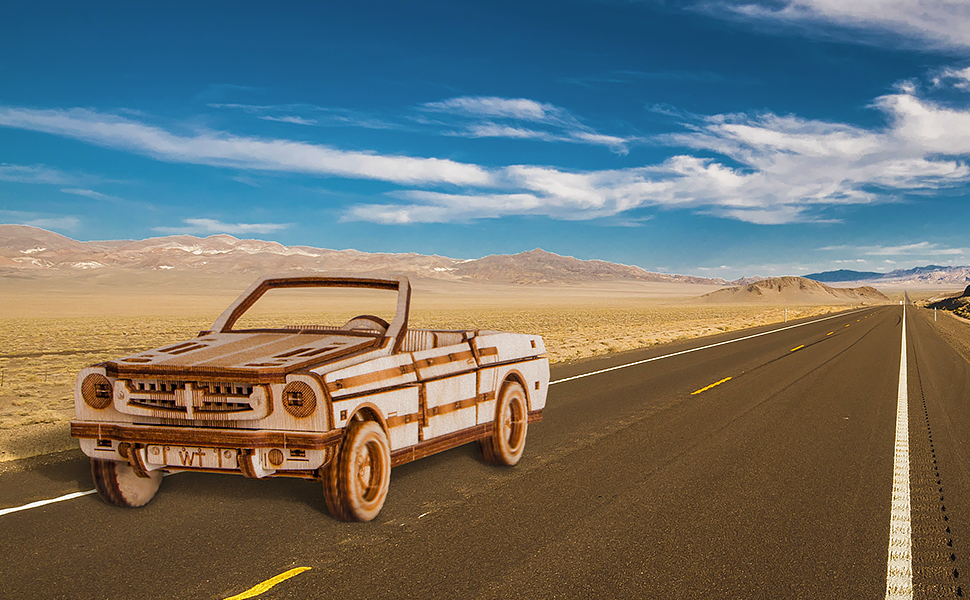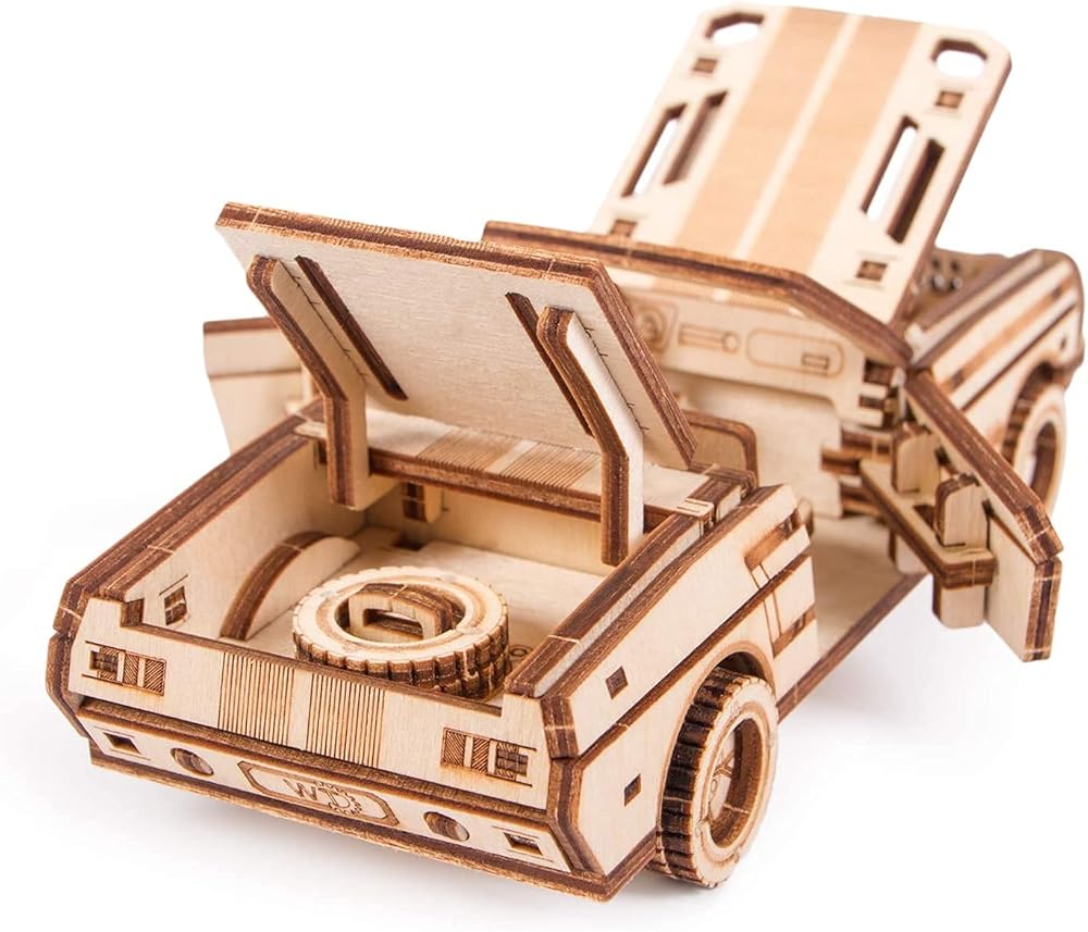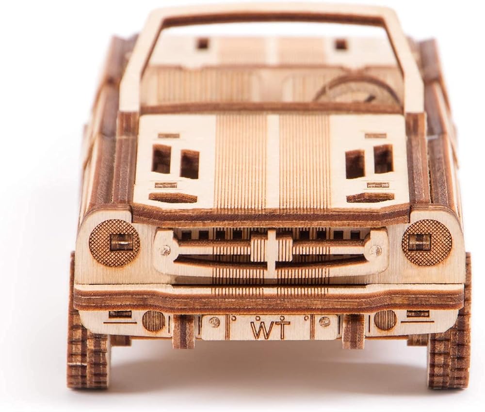 لغز خشبي صغير ثلاثي الأبعاد لسيارة Wood Trick Cabriolet للبالغين والأطفال - مقاس 6.7 × 2.8 بوصة - أجزاء متحركة ميكانيكية - مجموعة نماذج خشبية