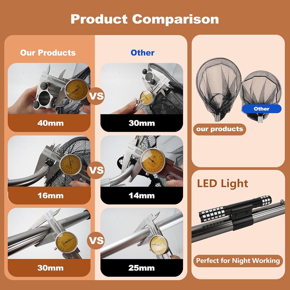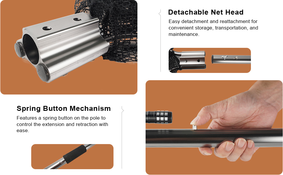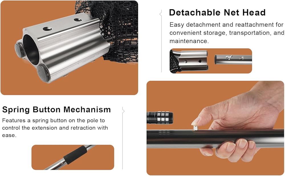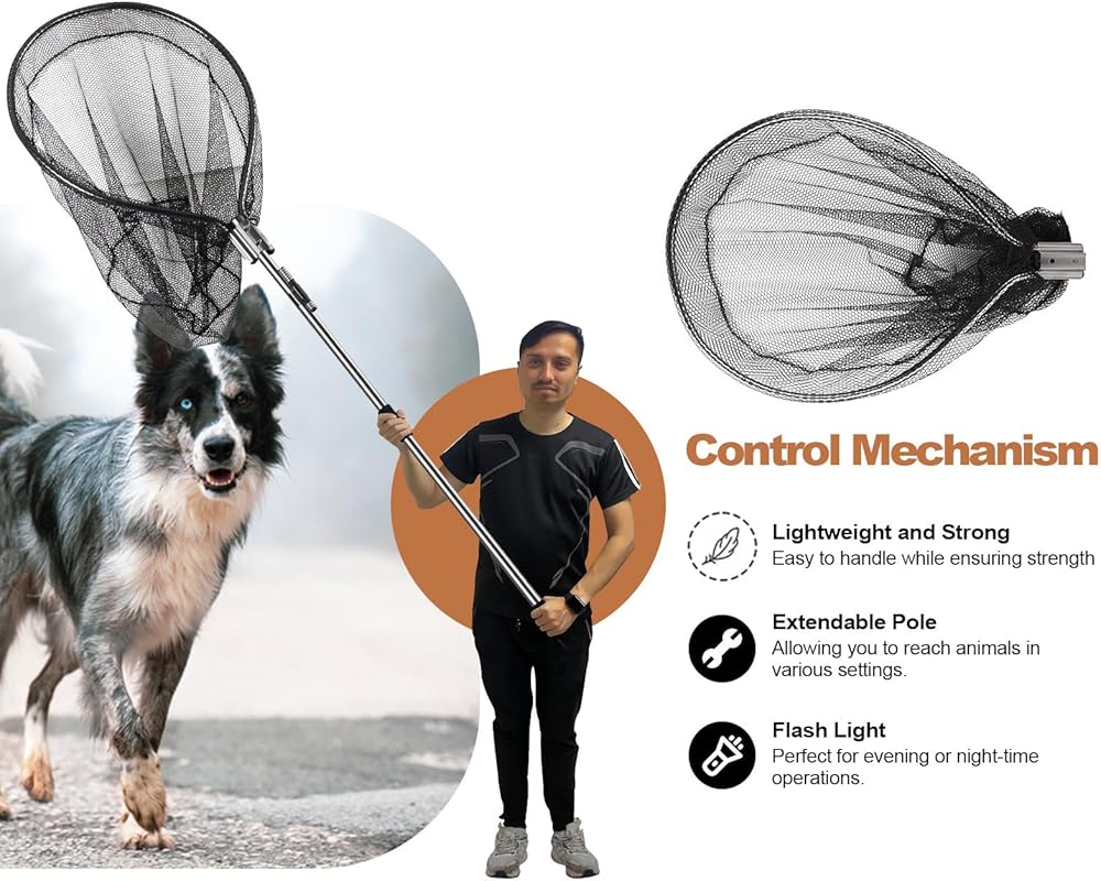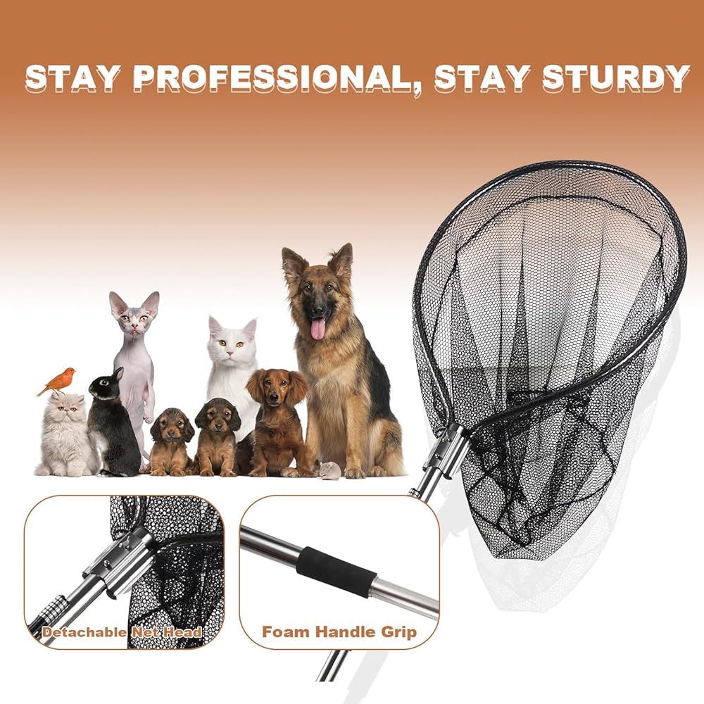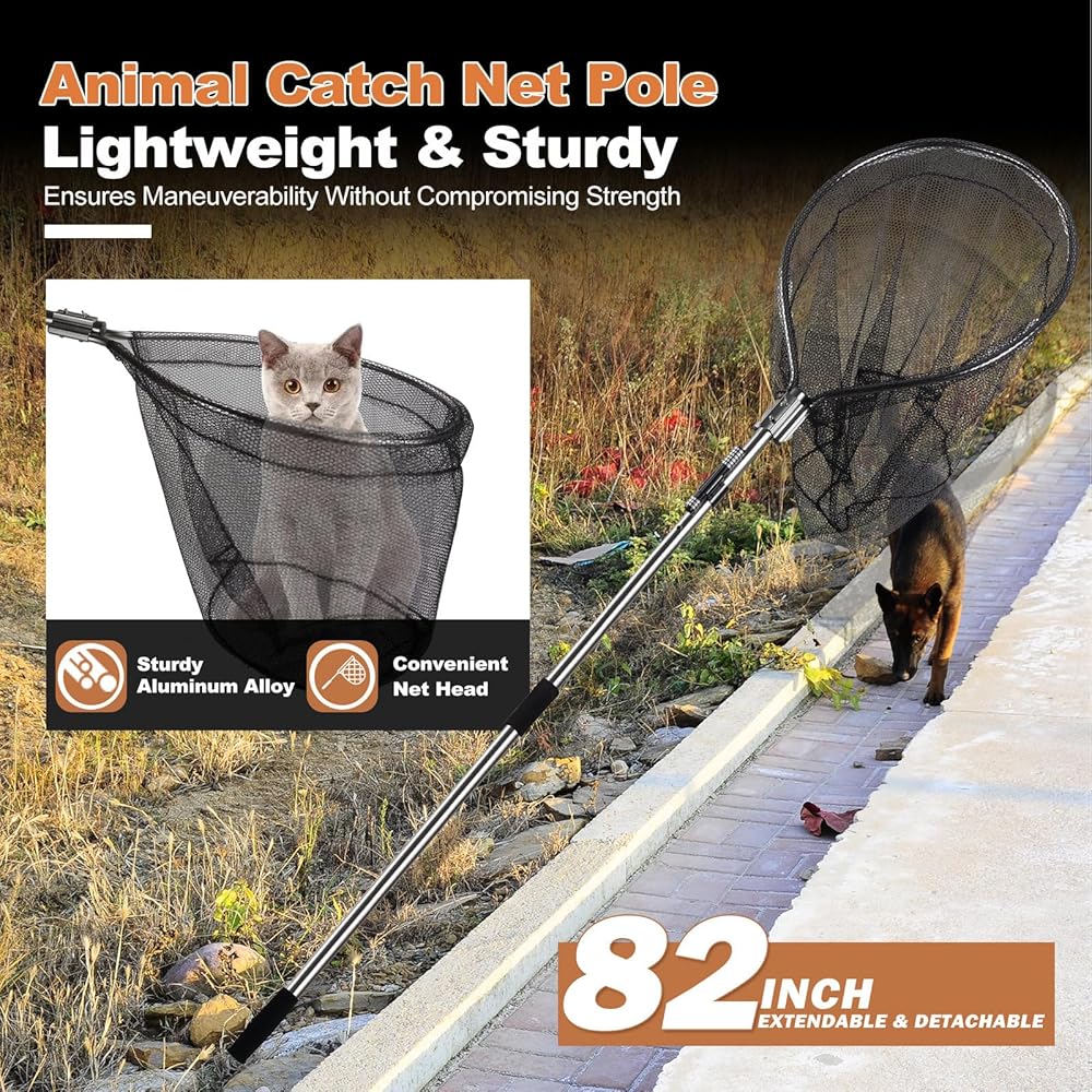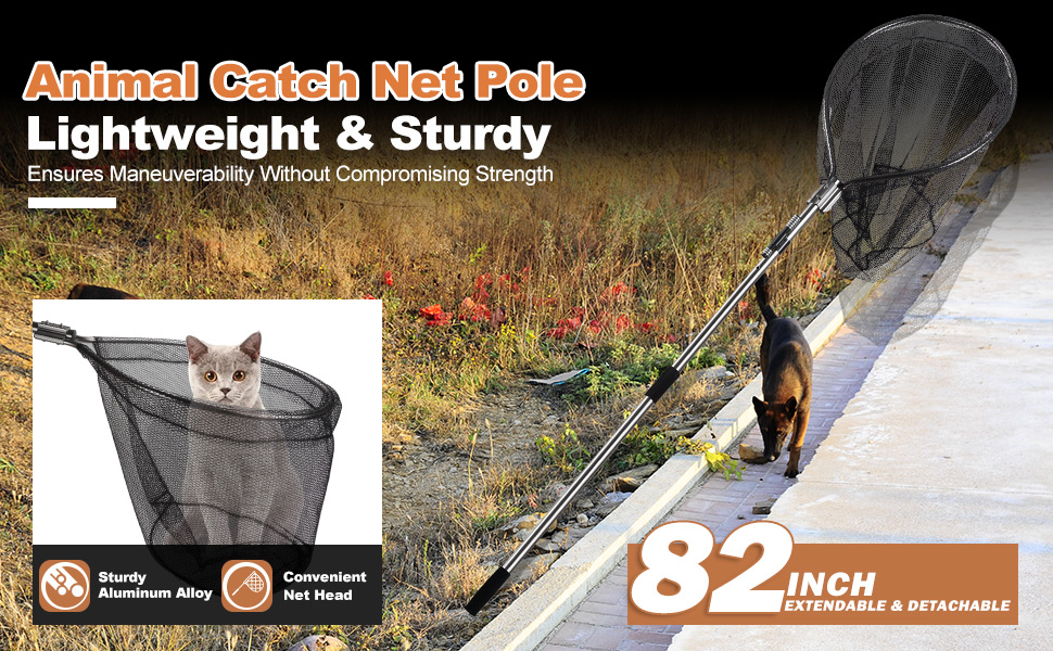 شبكة عمود صيد الحيوانات: يتيح لك طول شبكة عمود صيد الحيوانات القابل للتعديل الوصول إلى الحيوانات في بيئات مختلفة. قم بتمديد العمود وسحبه حسب الحاجة، مما يجعله مناسبًا لمجموعة واسعة من حالات التعامل مع الحياة البرية، بما في ذلك شبكة القطط، وشبكة الحيوانات، وشبكة الدواجن، وشبكة التقاط الحيوانات، واحتياجات التحكم في الحيوانات في قطب الصيد.
