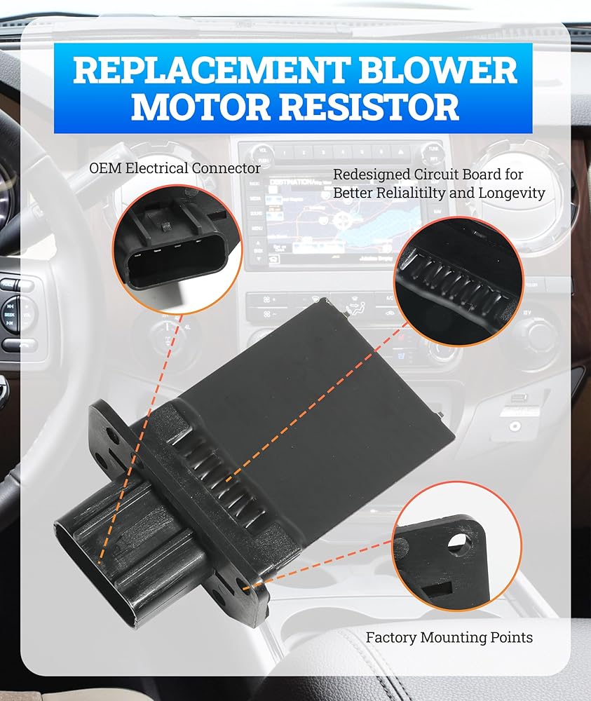 [Function] The HVAC blower motor resistor can restore the vehicle's heating and cooling system to its original Peak Performance. Durable design can withstand thermal fuse failure, overheating, and burnout.