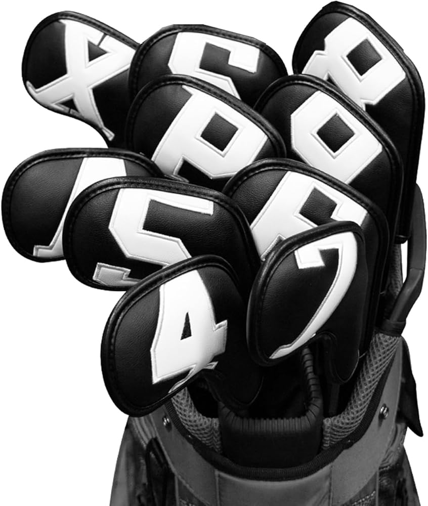 • ☑【يناسب جميع أنواع مجموعة مكواة الجولف】: غطاء رأس من حديد الجولف بحجم خارجي 6.4 × 4.3 بوصة. يناسب جميع العلامات التجارية Titleist، Callaway، Ping، Taylormade، Cobra إلخ. يرجى التأكد من أن مقاس نادي المكواة الخاص بك يمكن أن يناسبه قبل الشراء. 10 قطعة/المجموعة، بما في ذلك 4,5,6,7,8,9,P,A,S,X.