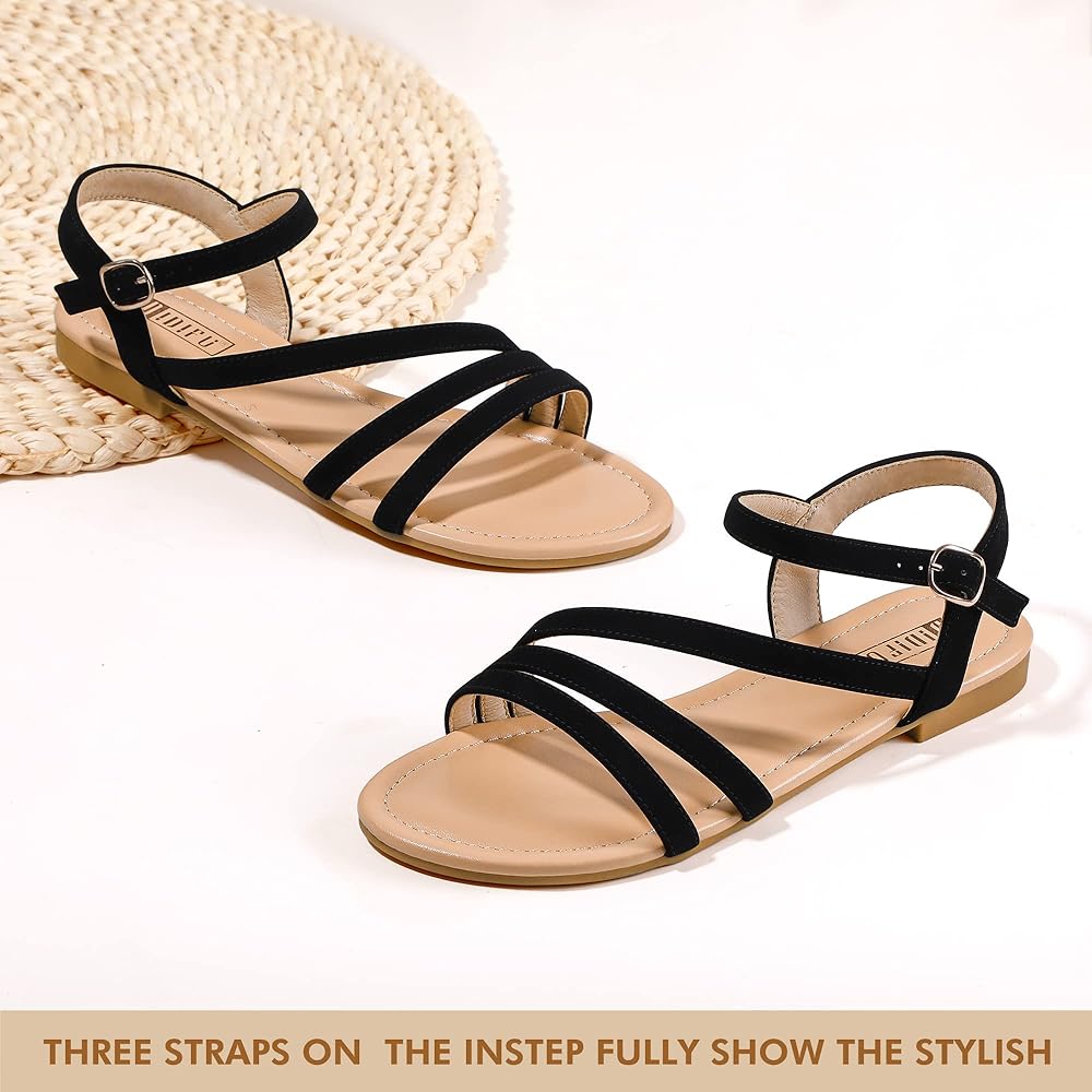 تصميم عصري بأشرطة: شريطان عند أصابع القدم، وحزام الكاحل وأشرطة مشط القدم تجعل هذا الصندل المسطح يأخذ عناصر أكثر عصرية، وسهل الارتداء والخلع. كما يتميز هذا التصميم أيضًا بخصائص تغليف أكثر، بحيث تناسب الصنادل النسائية أقدامنا بشكل أقرب، وتقلل من احتكاك القدم داخل الصنادل النسائية، وليس من السهل أن تسقط عند المشي.