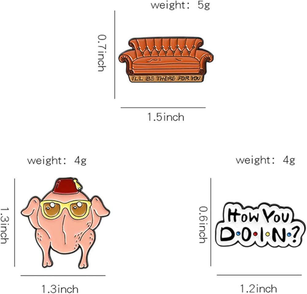 3 قطع من دبابيس الأصدقاء، دبابيس الأفلام التلفزيونية للنساء والرجال والفتيات والأولاد