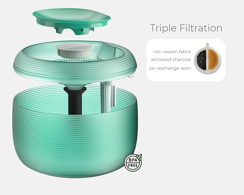 • يوفر الترشيح الثلاثي مياه عالية الجودة لقطتك أو كلبك. يقوم راتنج التبادل الأيوني والفحم المنشط بتصفية المياه وإزالة الشوائب. نقدم فقط الأفضل لمحبوبتك!