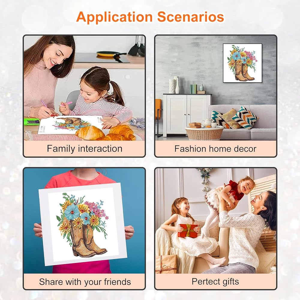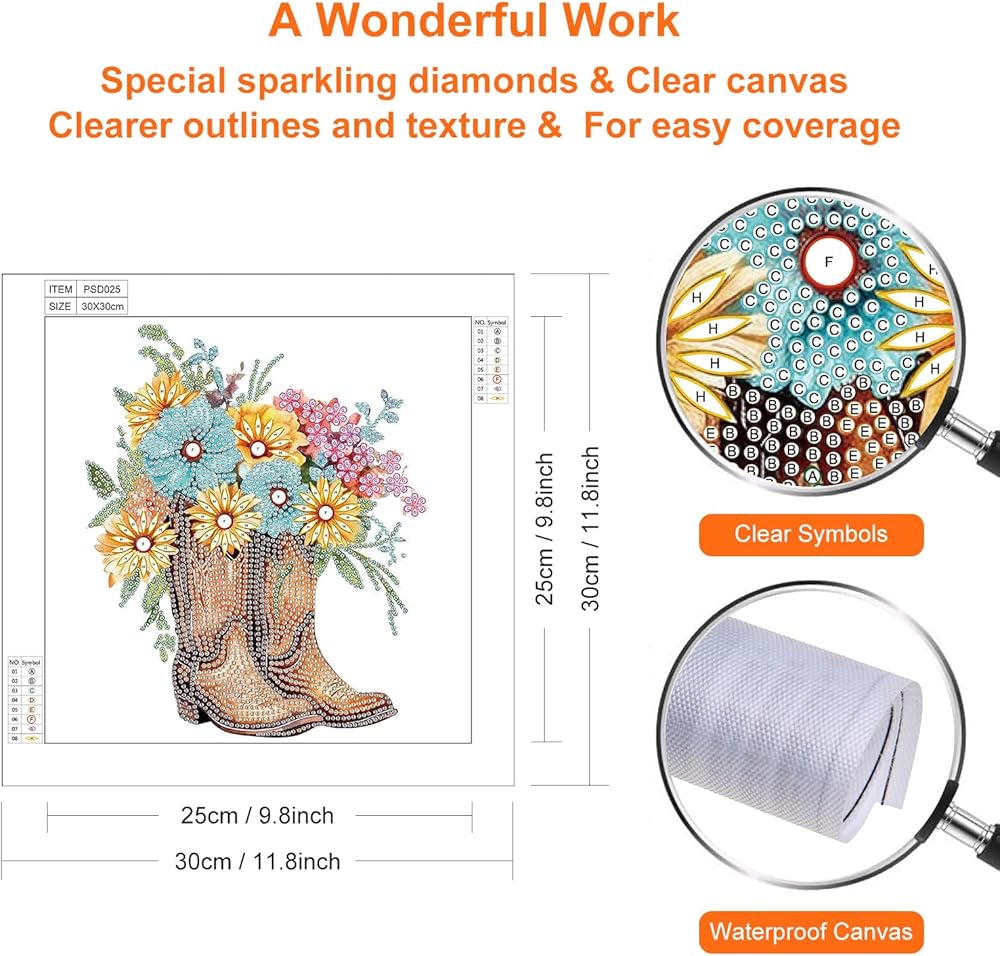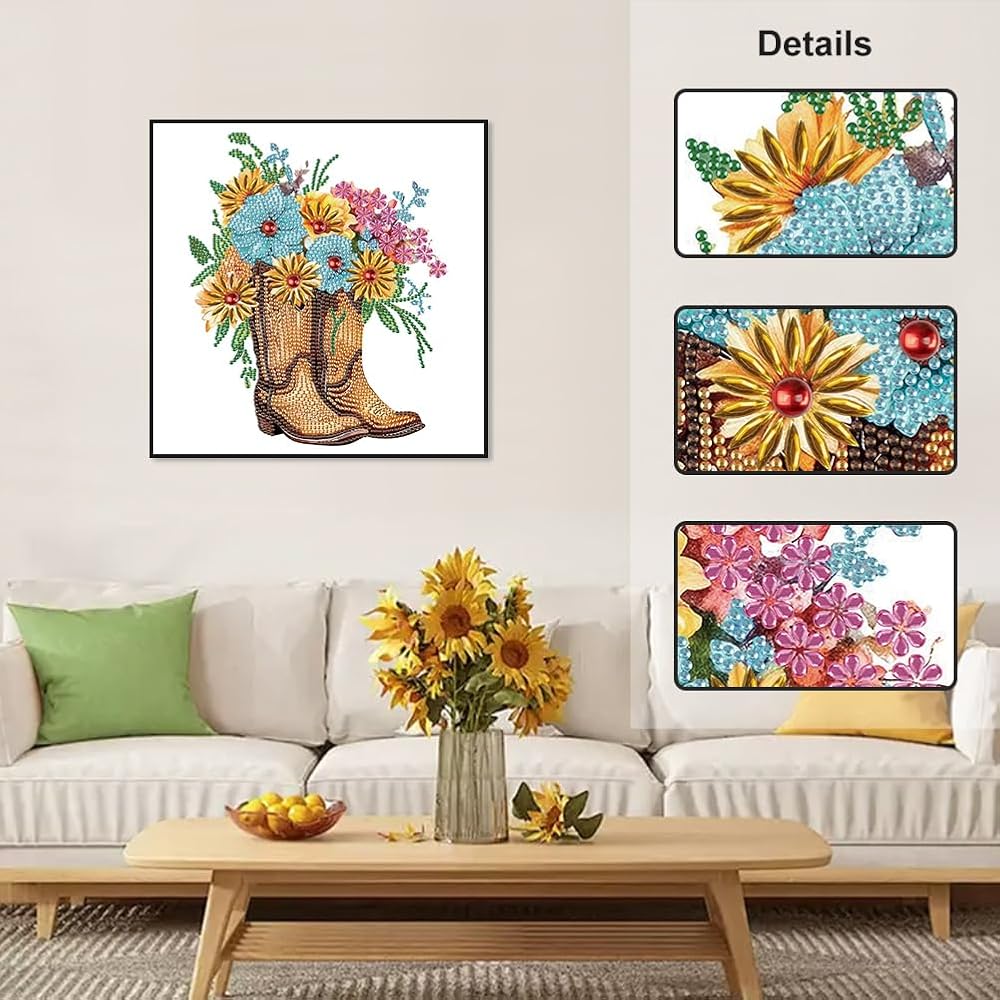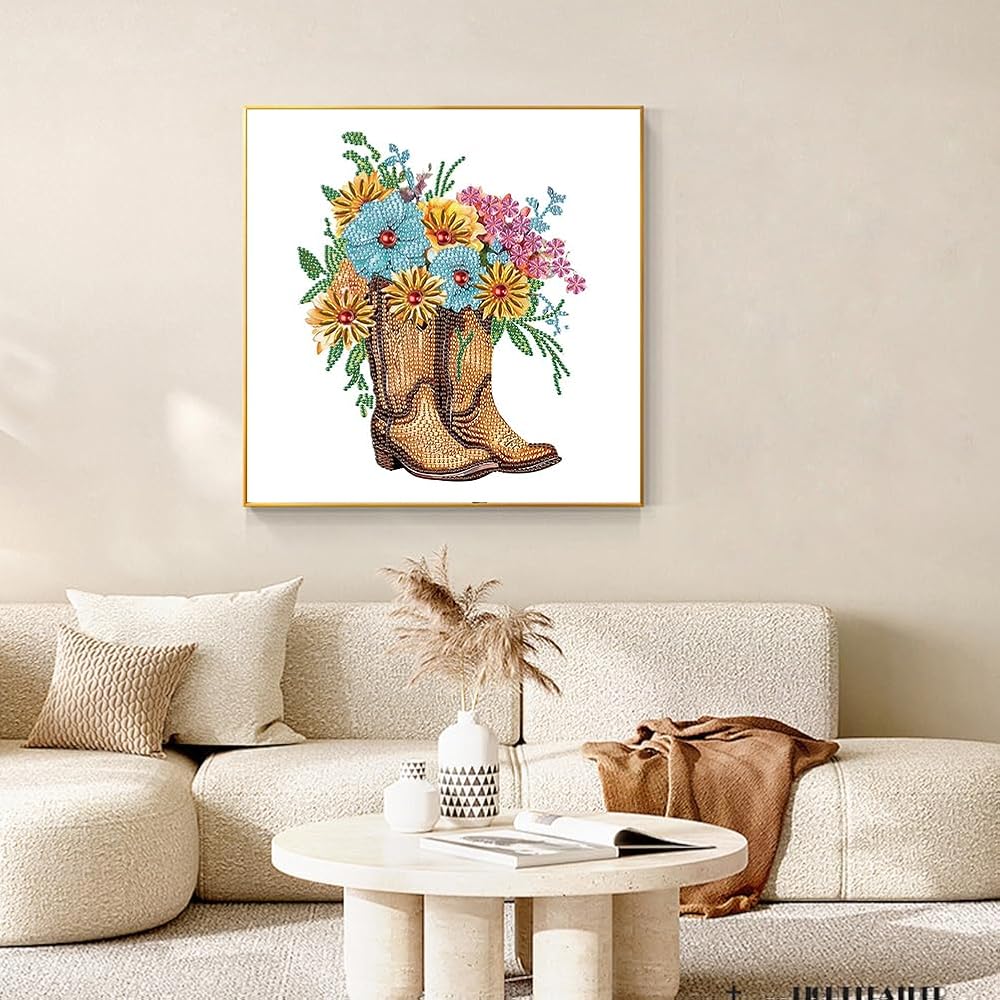 مجموعات الطلاء الماسي من Acudotr للبالغين، مجموعات فنية ماسية ذات شكل خاص للمبتدئين، لوحة ألماس بأحجار الراين الكريستالية لتزيين جدران المنزل، أحذية طويلة، 12 × 12 بوصة