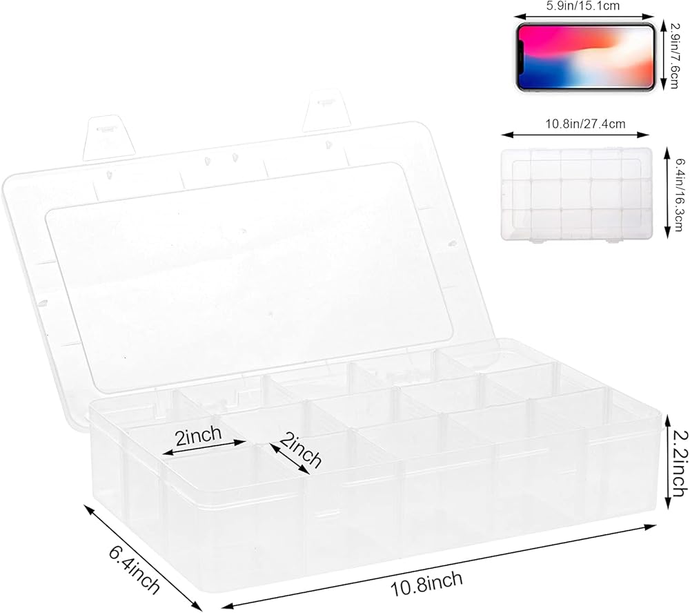 Applications - Our plastic organizer container is large enough to store jewelry, earrings, necklace, finger rings, beads, cosmetics, craft, kids toys, pills, fishing tackles, small electronic parts, nails or other small items.