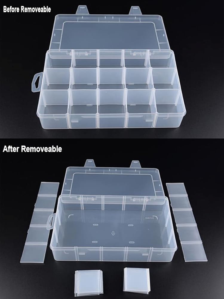 • WIDELY APPLICATIONS: The plastic storage box is perfect for storing beads, earrings, necklace, finger rings or other small jewelry. It can also store fishing hook, small electronic parts, nails, nuts and bolts. You can see clearly the contents and access what you want with ease.
