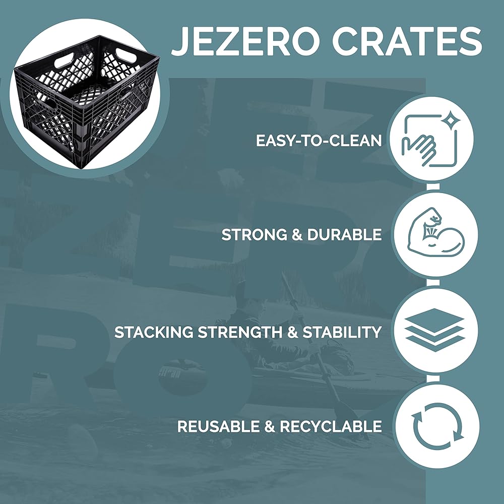 The Jezero® Heavy Duty Milk Crate is your answer for a durable multi-use organizer. Our plastic storage bins are a great solution for classroom storage & book bins, household organizing, garage storage, as a tote for kid's toy storage, craft storage, an outdoor storage bin for garden tools, travel and more!