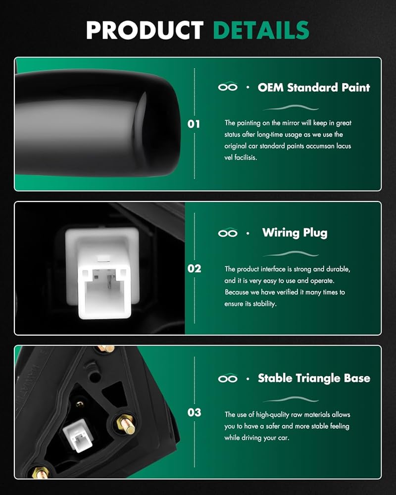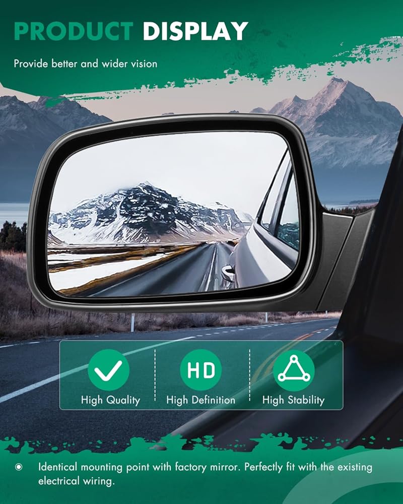 - 🚗 【تعديل المرآة الكهربائية 】 - سيسمح لك تعديل المرآة الكهربائية بتغيير موضع وجه المرآة من خلال أدوات التحكم في المصنع داخل سيارتك