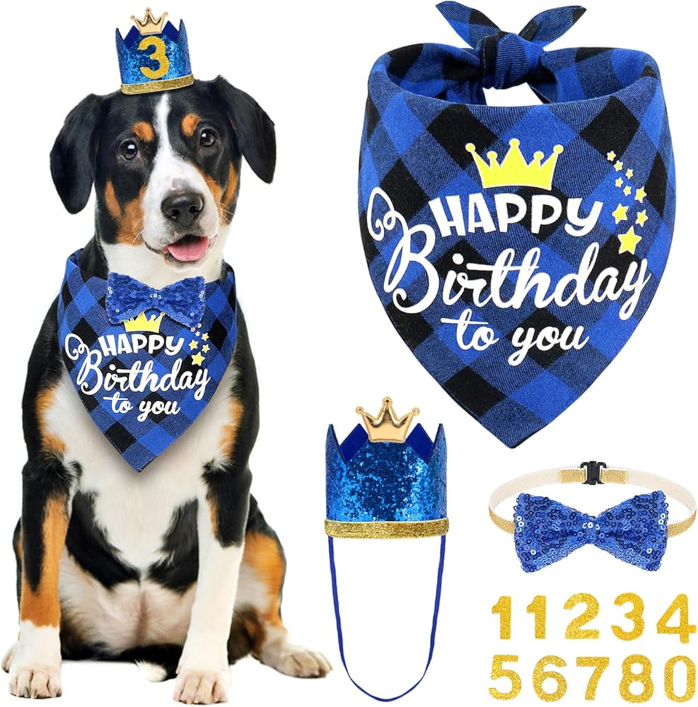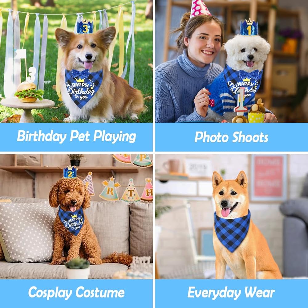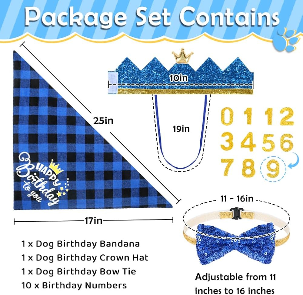 ➤مجموعة مكونة من 4 قطع - تشتمل على منديل عيد ميلاد للكلاب، وقبعة تاج للحفلات، وربطة عنق لطيفة و10 قطع أرقام. إنها الهدية المثالية لحيوانك الأليف المحبوب في حفلات أعياد الميلاد والحفلات التنكرية. نحن نعلم أن حيواناتك الأليفة جزء مهم من حياتك وعائلتك، فلنحتفل بعيد ميلادها