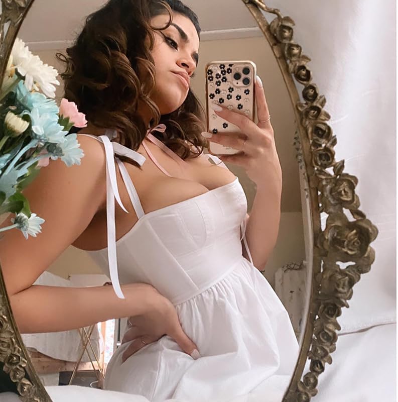 التصميم: أشرطة سباجيتي، قابلة للتعديل بشريط ناعم يمكن ربطه على شكل فيونكة، رقبة مربعة عميقة مثيرة وبدون ظهر، خصر مرن، نمط على شكل حرف A، تصميم مطوي، تنورة منتفخة، فستان قصير قصير. تجعلك أكثر جمالاً وأناقةً وإثارةً وأناقةً.