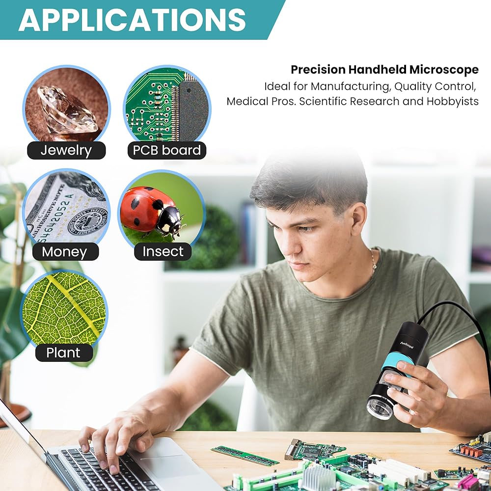 The HHD Professional Series Portable USB Microscopes are easy to use, high power scopes. With continuous magnifications from 10x to 280x, it's ideal for quality control inspectors, medical professionals, and scientific researchers in addition to hobbyists and beginners for viewing stamps, coins, bugs, plants, rocks, skin, gems, circuit boards, and more. With the higher power magnifications, you can even view traditional microscope slides under transmitted illumination. Comes with an adjustable polarizer that utilizes polarized light to reveal detail in a specimen, perfect for the study crystalline and fibrous structures.